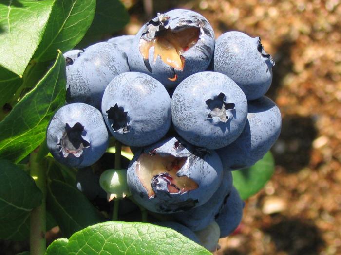 Dommages causés par des vers blanc dans un champ de camérisiers.