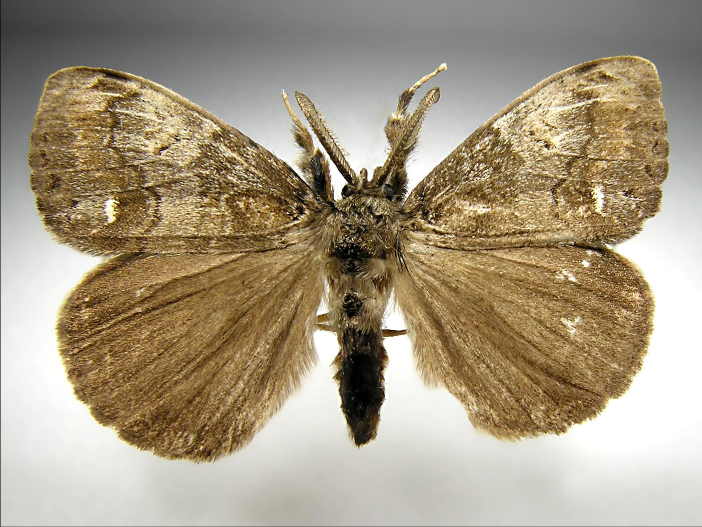 Adulte : envergure des ailes du mâle de 31,0 mm; le corps est gris brun et peu contrasté; la région médiane des ailes antérieures est pâle et suivie d'une ligne postmédiane noire; une petite tache blanche est présente dans la partie postérieure de la région submarginale; la femelle ne possède pas d’ailes et est de couleur beige.