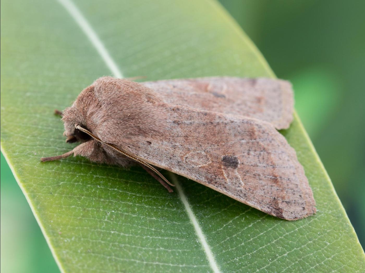 Adulte : envergure des ailes de 38,0 à 43,0 mm; la tête et le thorax sont gris brun et poilus; les ailes antérieures sont brunes avec des taches grises diffuses sur la marge antérieure; la tache réniforme présente un point noir; la ligne submarginale est blanche; les ailes postérieures sont uniformément grises avec une frange pâle.