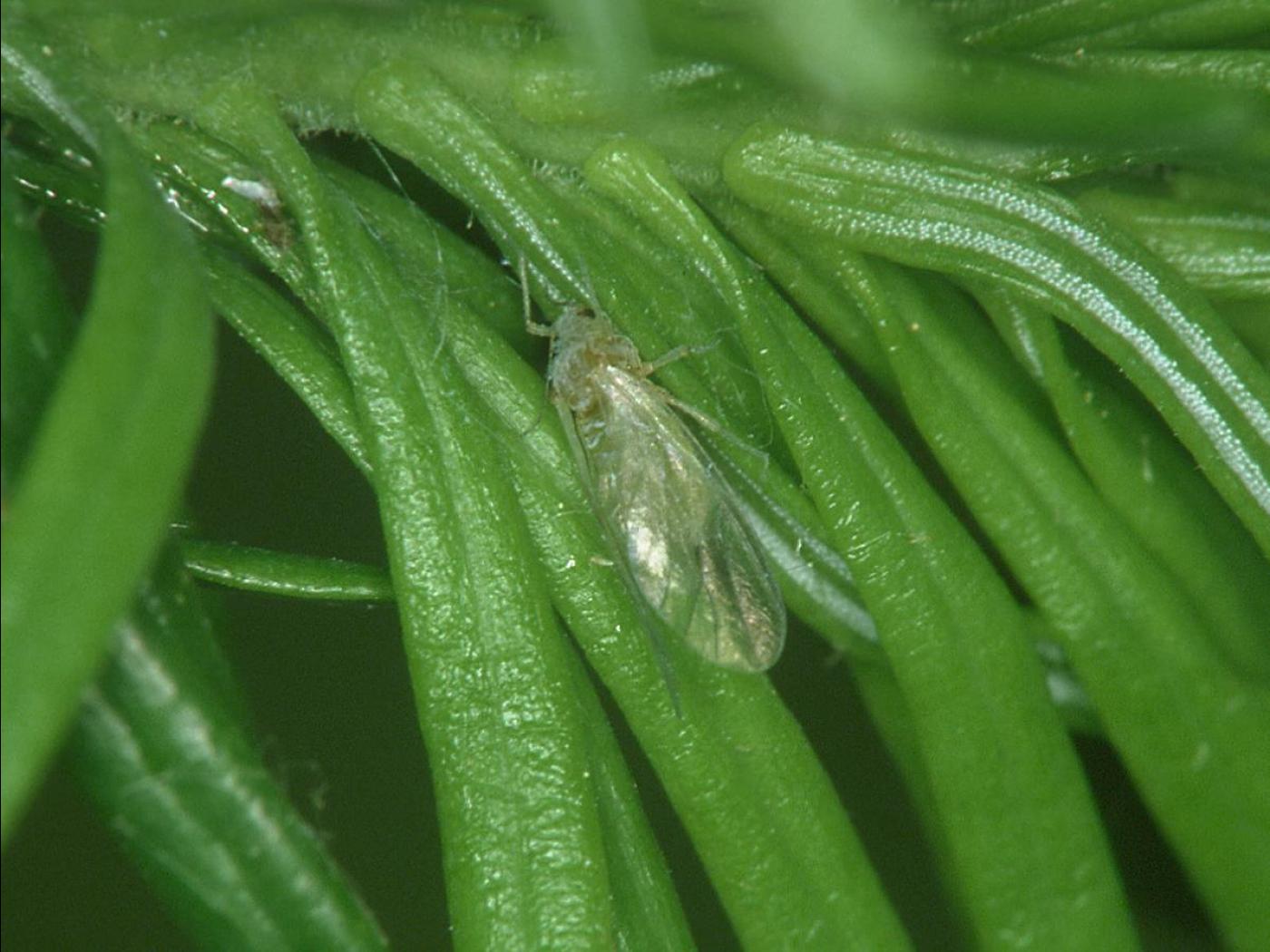 Il faut surveiller la deuxième génération issue de la reproduction des fondatrices, car c’est cette génération qui cause le plus de dommages, les jeunes aiguilles fragiles étant plus vulnérables aux attaques des pucerons. La période critique se situe entre le stade III+ et le stade IV des bourgeons du sapin. On doit commencer le dépistage au deuxième stade des fondatrices, lorsque l’éclosion des œufs est terminée. Les fondatrices au premier stade sont très petites et difficiles à détecter. La surveillance doit être amorcée quatre ans avant la récolte des arbres. Il faut noter le stade de développement des bourgeons et la présence d’un ou de plusieurs pucerons sur les pousses de l’année précédente. Les fondatrices sont en général sous les aiguilles. On doit aussi rechercher la présence d’une goutte de miellat à l’extrémité de l’abdomen du puceron. Cette goutte facilite le repérage, surtout quand elle brille au soleil. Un traitement des arbres peut être effectué lorsqu’au moins un puceron est identifié sur plus de 9 % des pousses. Si l’infestation est inférieure à ce seuil, les dégâts à la fin de la saison sont de moins de 5 % et ne sont pas visibles pour les acheteurs.