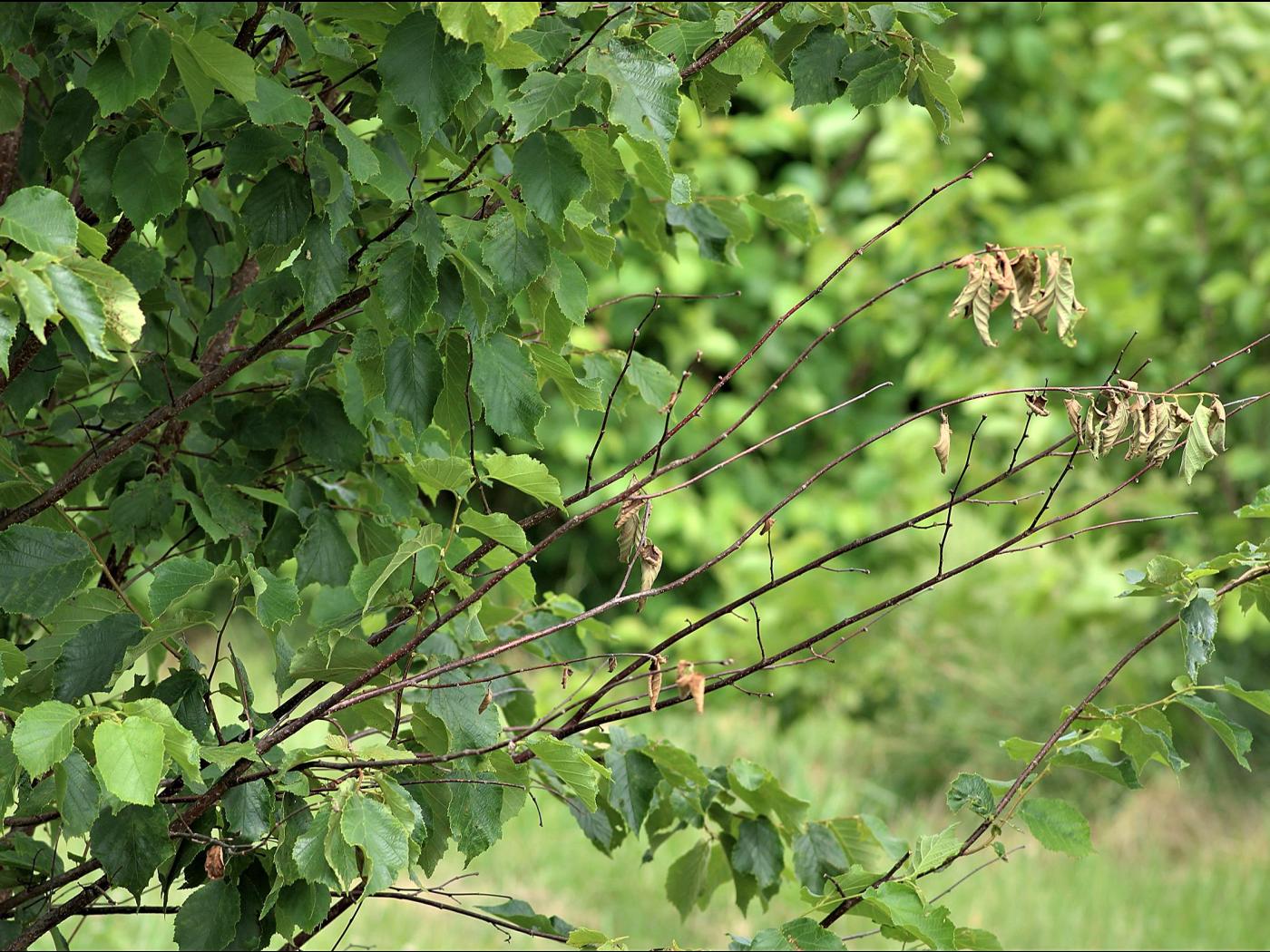 La brûlure orientale du noisetier peut être confondue avec la brûlure bactérienne du noisetier (Xanthomonas arboricola pv. corylina).