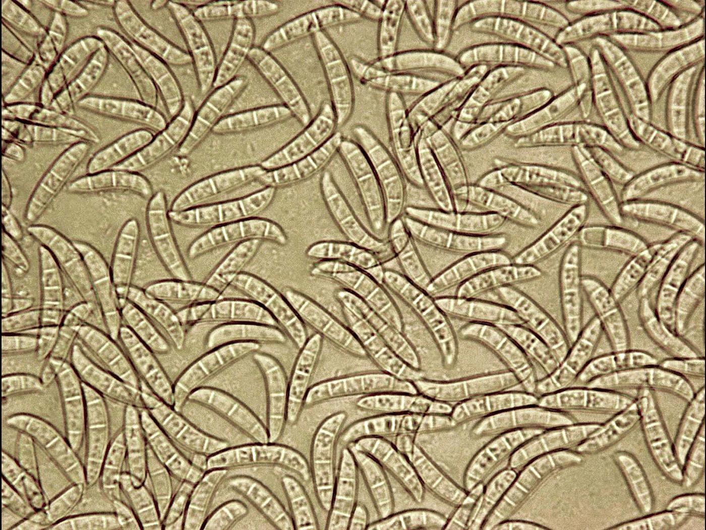- Chlamydospores : Abondantes. Seules, en chaînes ou en grappes. Formées à partir des hyphes ou des macroconidies. Intercalaires (généralement) / terminales (occasionnellement).