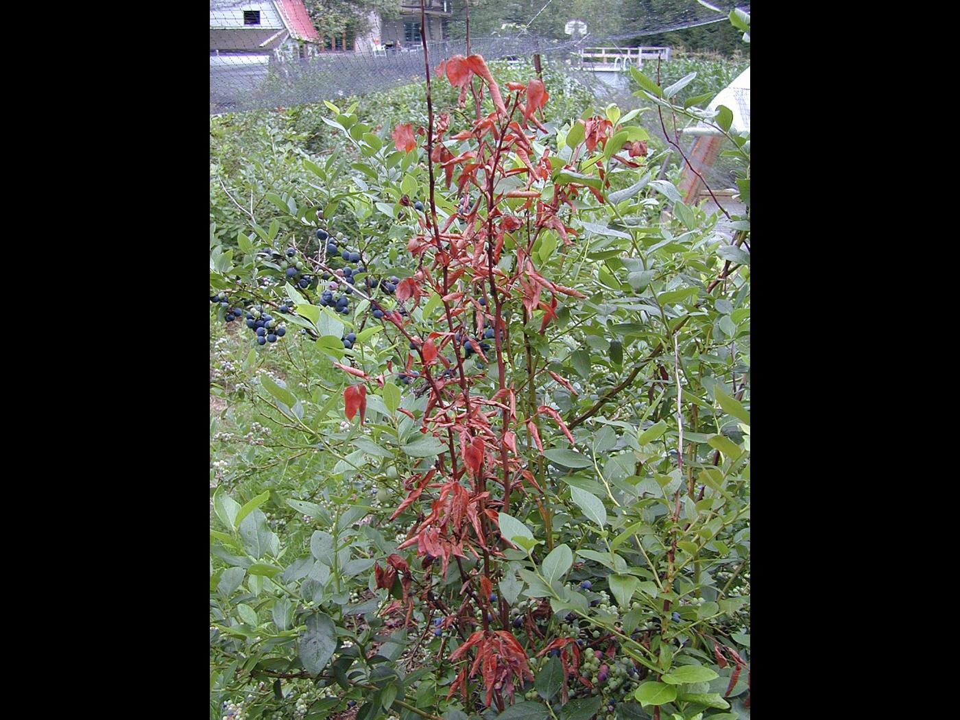 Feuille : jaunissement puis rougissement flamboyant de toutes les feuilles. Flétrissement, dépérissement puis chute des feuilles.