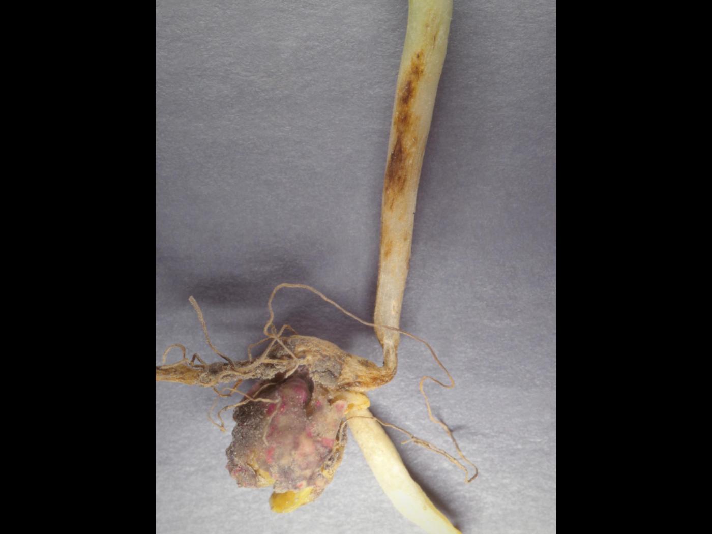 Fusarium solani f. sp. pisi affecte les plantules et les jeunes plants (avant la floraison) et peut, selon le cultivar, causer de la fonte des semis en pré et postémergence.