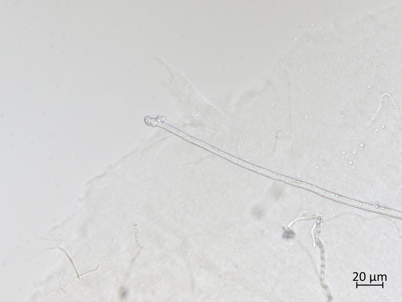 : Plusieurs conidies au bout de conidiophores de Orbilia blumenaviensis.