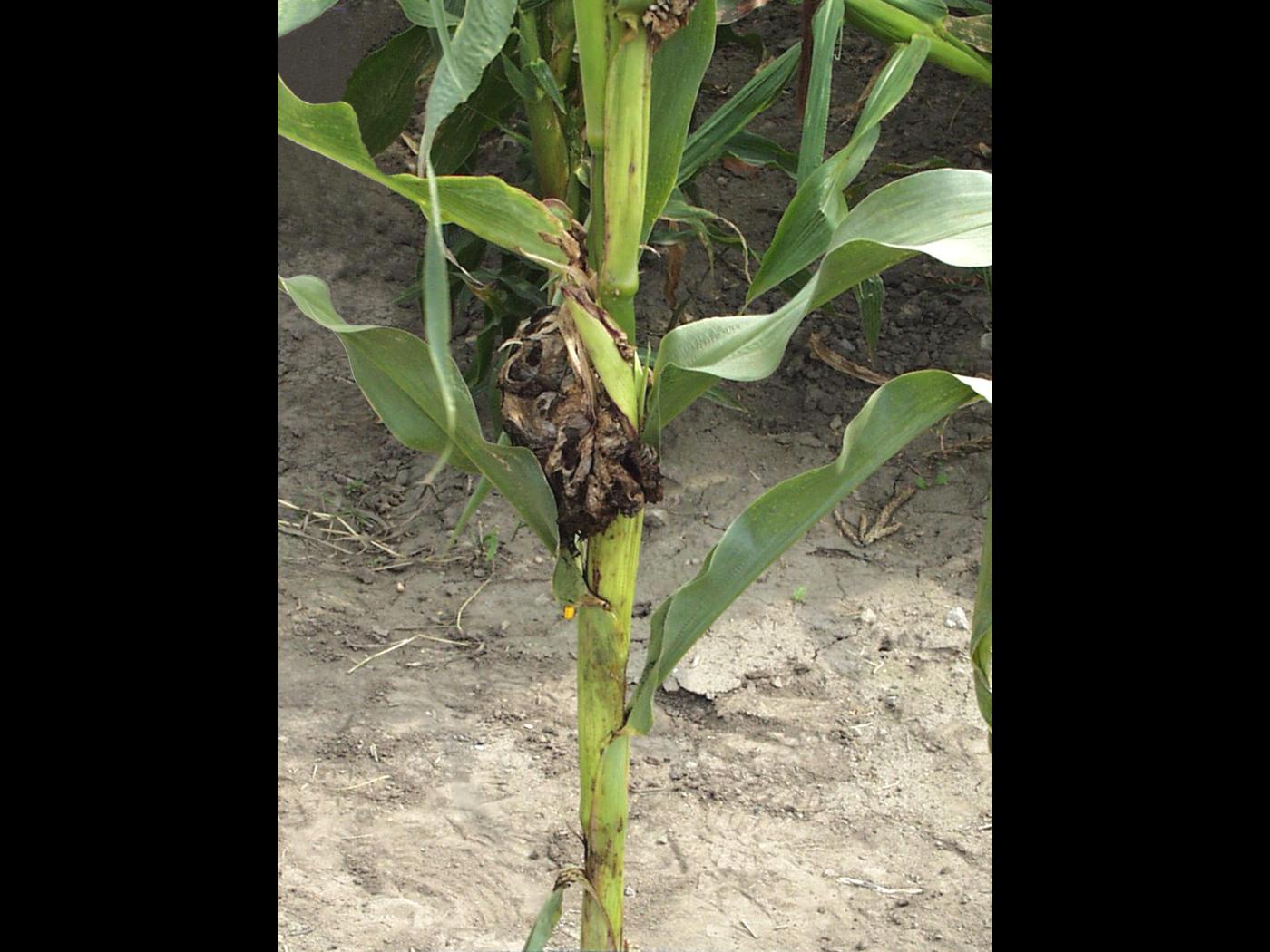 Plante : lorsque de grosses tumeurs envahissent la tige sous les épis, les plants peuvent être rabougris, stériles ou produire de petits épis.
