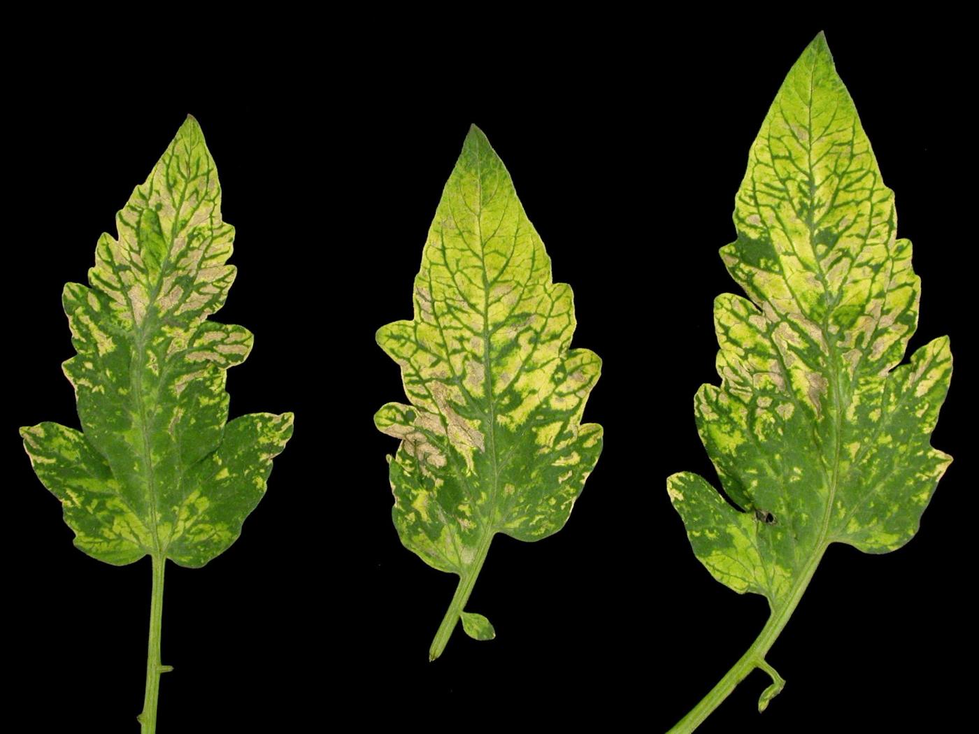 Légende: Mosaïque d'intensité différente sur folioles de tomate