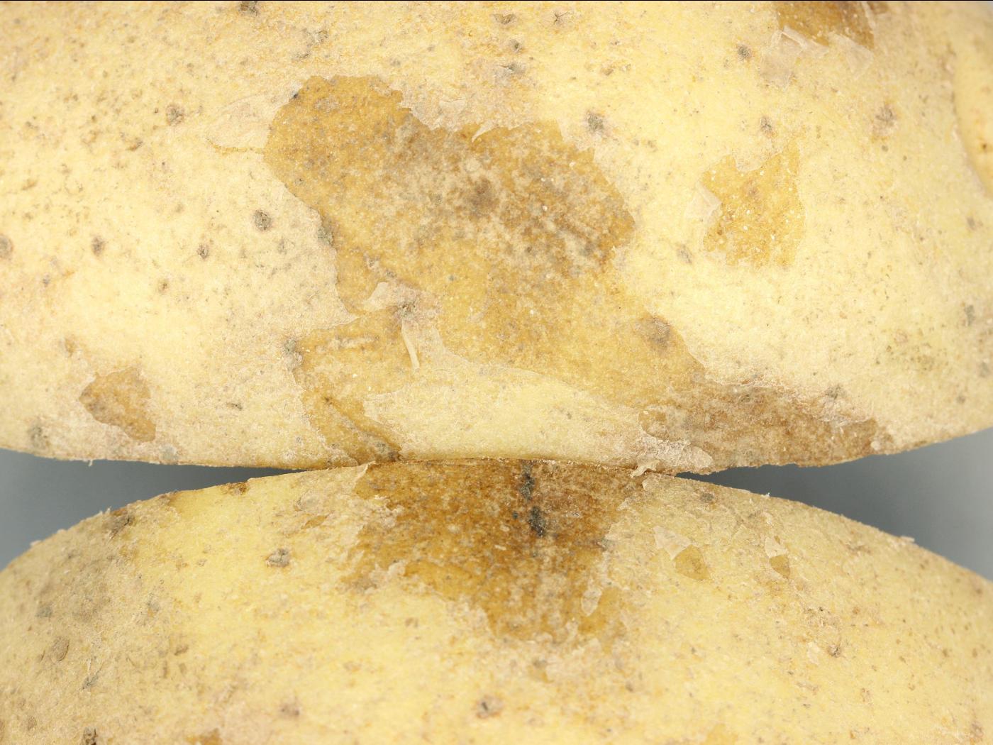 Tubercule : dans la chair, présence de nécroses annulaires composées de lignes, d’arcs ou d’anneaux nécrotiques brun rougeâtre, presque continus (appelé "spraing"). Sur les cultivars très sensibles, le périderme montre la présence d’anneaux concentriques superficiels, mais en relief, ou de lignes brun rougeâtre. Présence parfois de déformations (crevasses, peau réticulée).