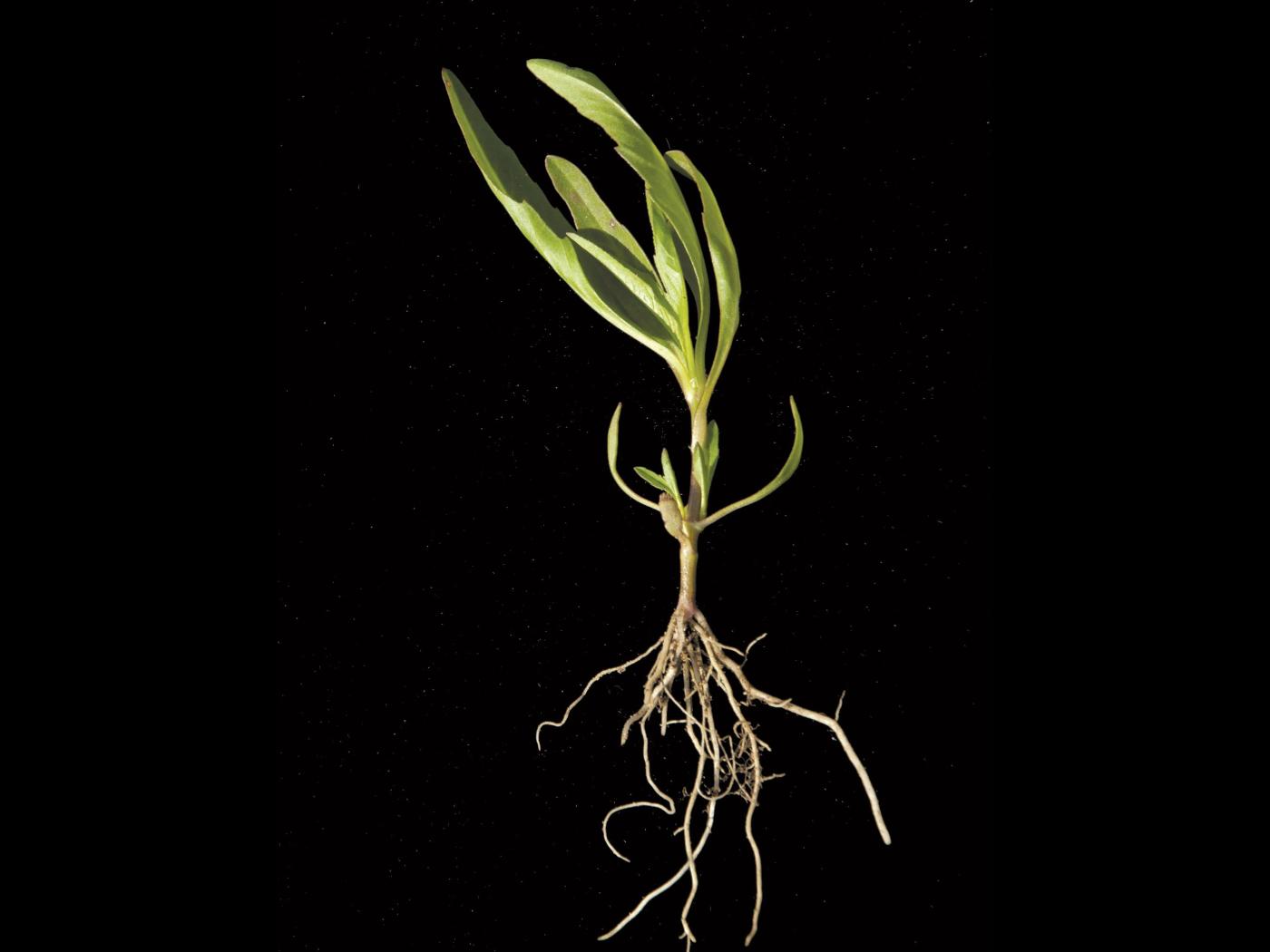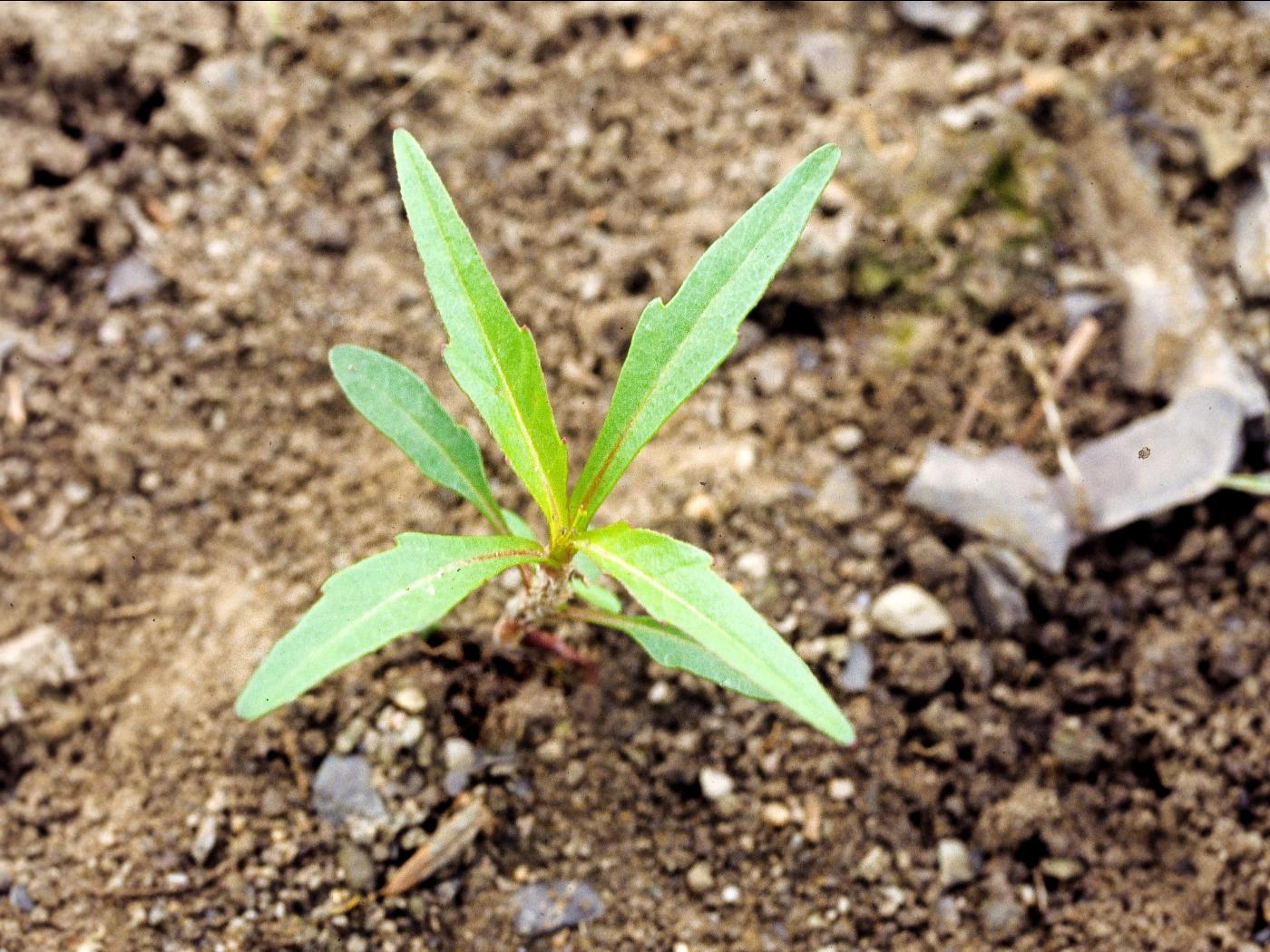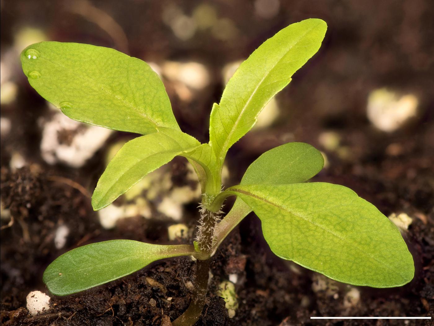 La plantule est à tige et à feuilles opposées. Les cotylédons sont de forme allongée, mesurant environ 5 mm de longueur. Leur nervure centrale est bien visible et ils sont portés par un pétiole distinct. Les premières feuilles sont allongées avec une marge entière à sinuée.