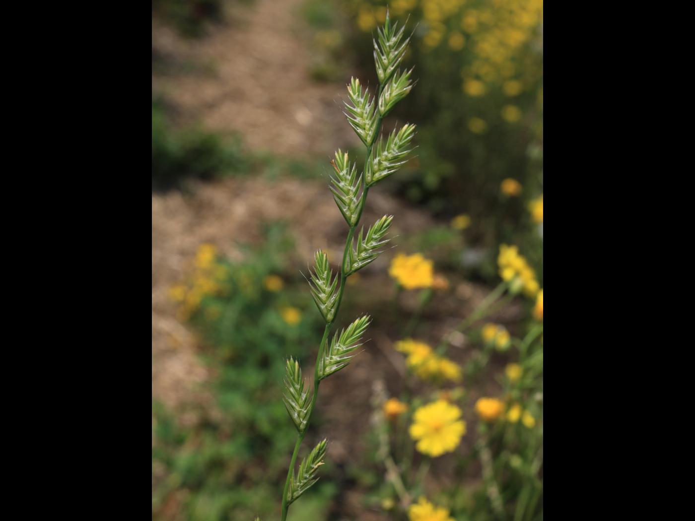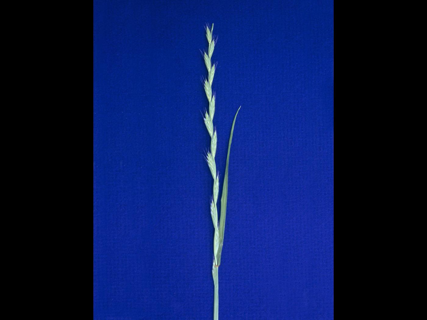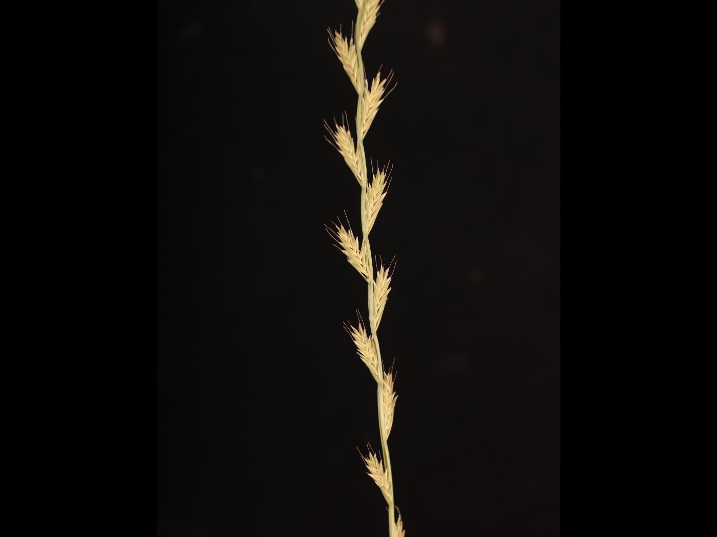 L’inflorescence est un épi d’aspect aplati mesurant de 10 à 25 cm de longueur. Les épillets sont opposés par leur dos à l’axe central et sont disposés en alternance sur l’axe. Ils se composent de 10 à 20 fleurons et mesurent de 15 à 25 mm de longueur. Une glume sous-tend chaque épillet et mesure de 5 à 10 mm de longueur, c’est-à-dire moins de la moitié de la longueur de l’épillet. Chaque lemme porte une arête bien visible mesurant jusqu’à 15 mm de longueur.