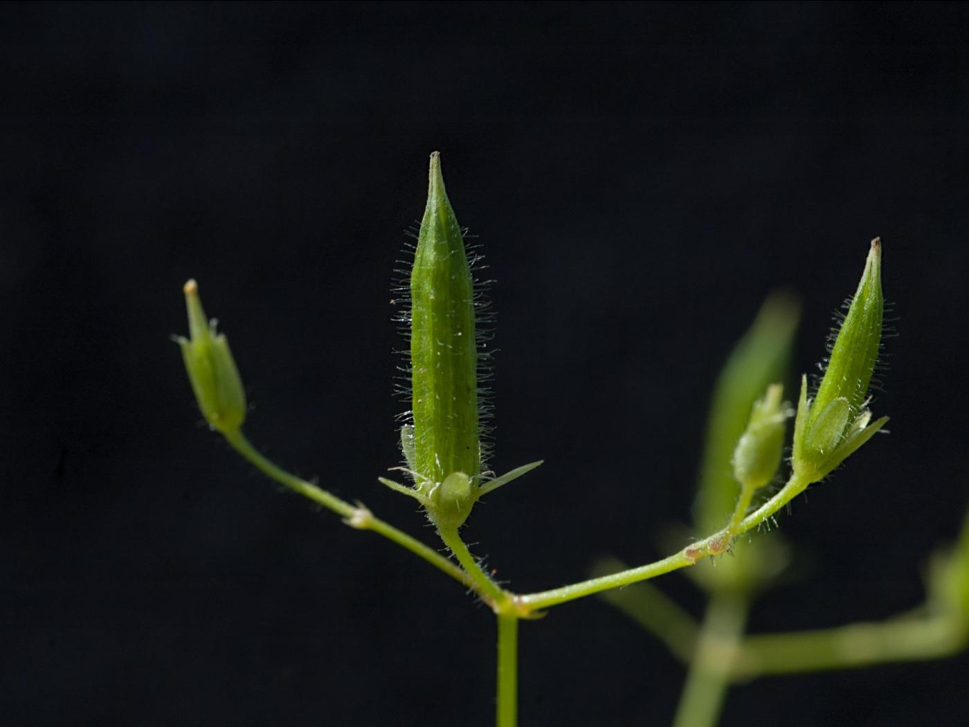 La plantule possède une tige dressée et des feuilles alternes. Les cotylédons sont de forme oblongue et mesurent de 3 à 6 mm de long. Les premières feuilles mesurent de 10 à 20 mm de large et sont habituellement glabres ou légèrement ciliées. Elles se composent de 3 folioles entières en forme de cœur.