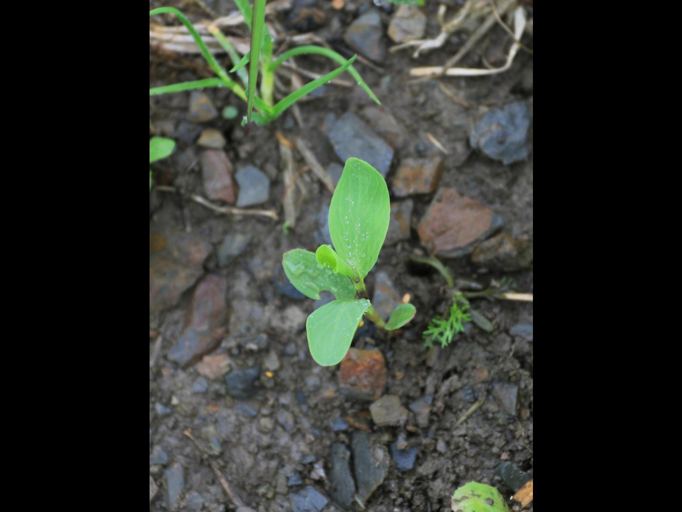 La plantule est à tige et à feuilles alternes. Les cotylédons sont allongés avec le sommet arrondi. Les premières feuilles sont semblables aux feuilles matures. Chaque nouvelle feuille se dégage d’un fourreau membraneux (ochréa).