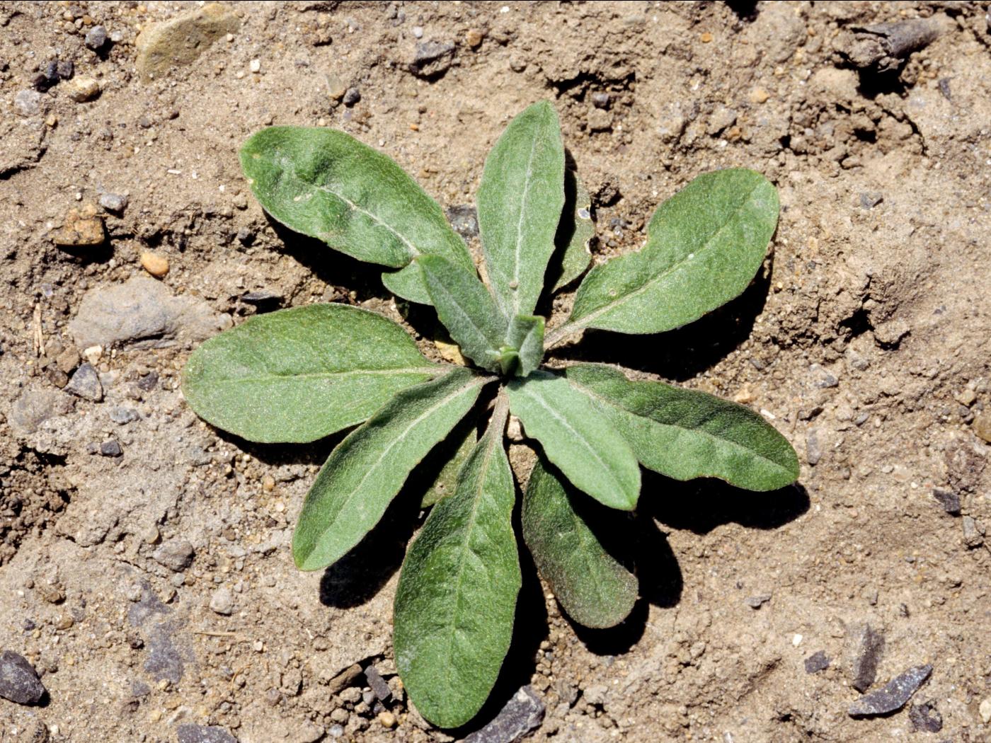La plantule se compose de feuilles alternes disposées en rosette. Les cotylédons sont oblongs à sommet arrondi et mesurent de 3 à 6 mm de long. Les deux premières feuilles sont entières et opposées, les suivantes sont alternes.
