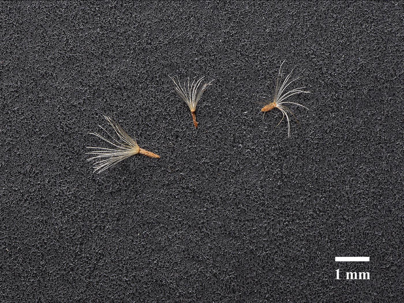 Les fruits sont des cypsèles de forme obconique étroite. Ils mesurent de 1 à 1,5 mm de longueur, sont striés et pubescents. Ils sont munis d’une aigrette à soie simple qui demeure attachée à maturité. L’aigrette mesure de 1,8 à 2,2 mm de longueur.