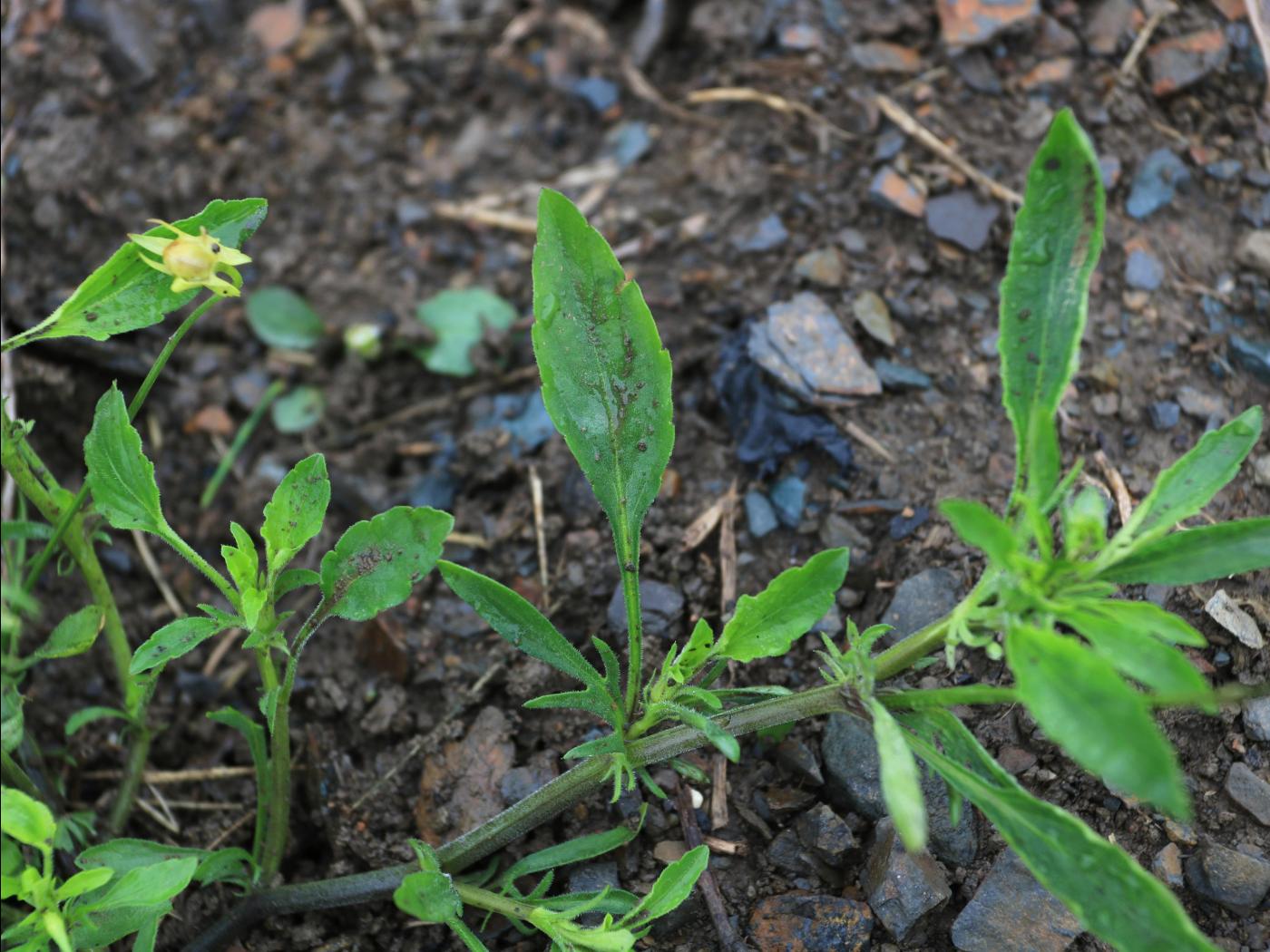 La plantule est à rosette et à feuilles alternes. Les cotylédons sont de forme orbiculaire et ils mesurent de 3 à 5 mm de longueur et de 3 à 4 mm de largeur. Les premières feuilles sont ovées à orbiculaires, à marge dentée et mesurent de 1 à 1,5 cm de longueur.