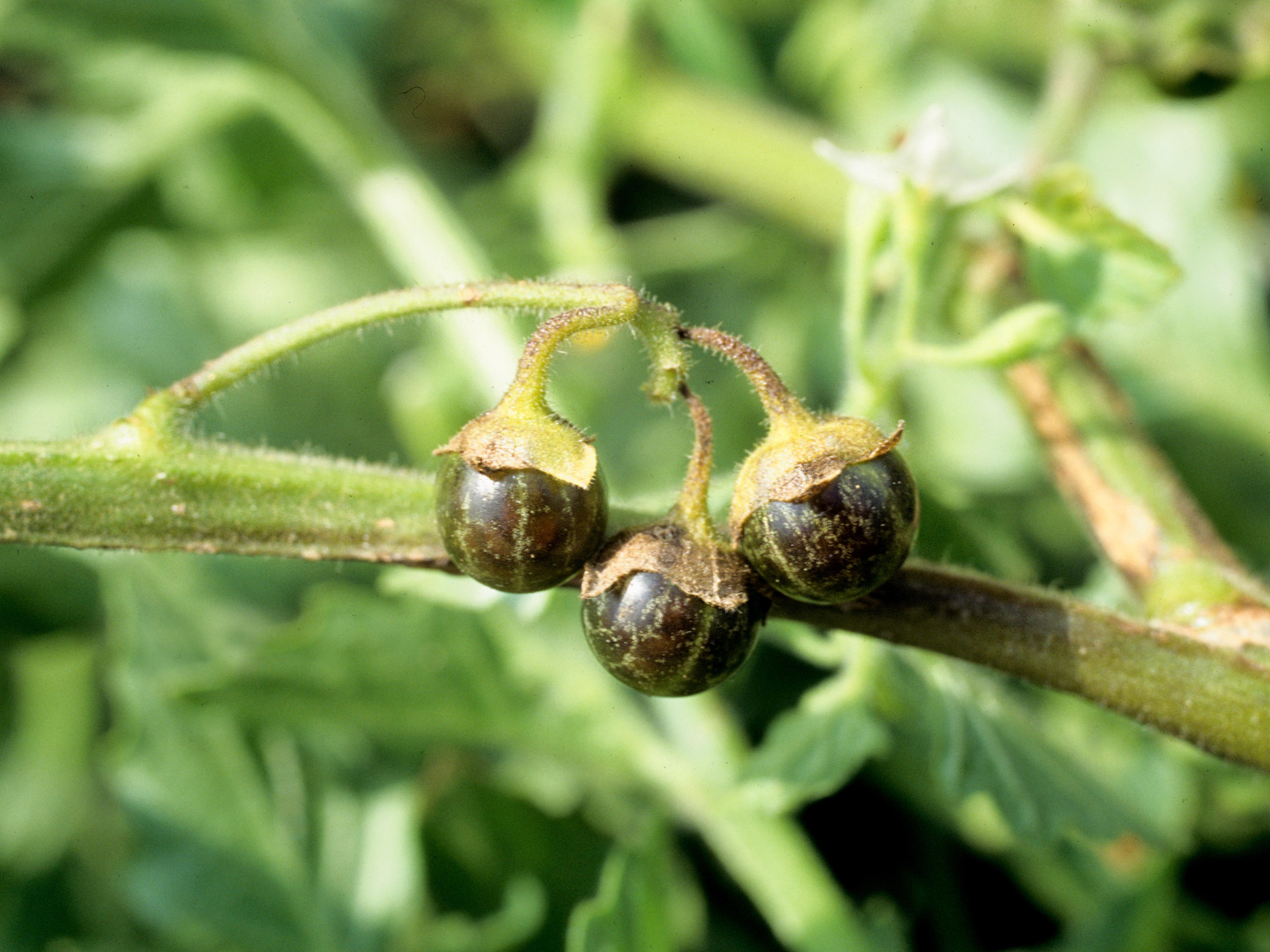Les fruits sont de petites baies vert brunâtre à brun foncé.