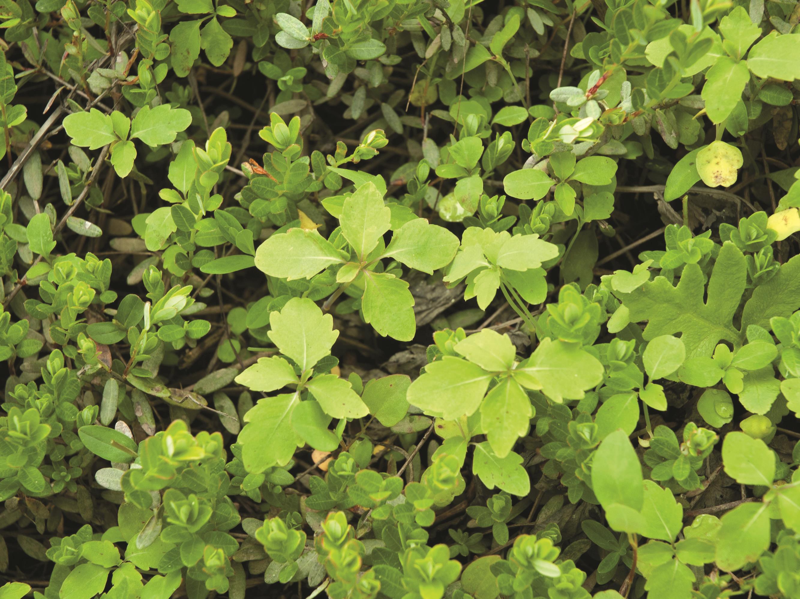 Groupe de plantules dans un champ de canneberges