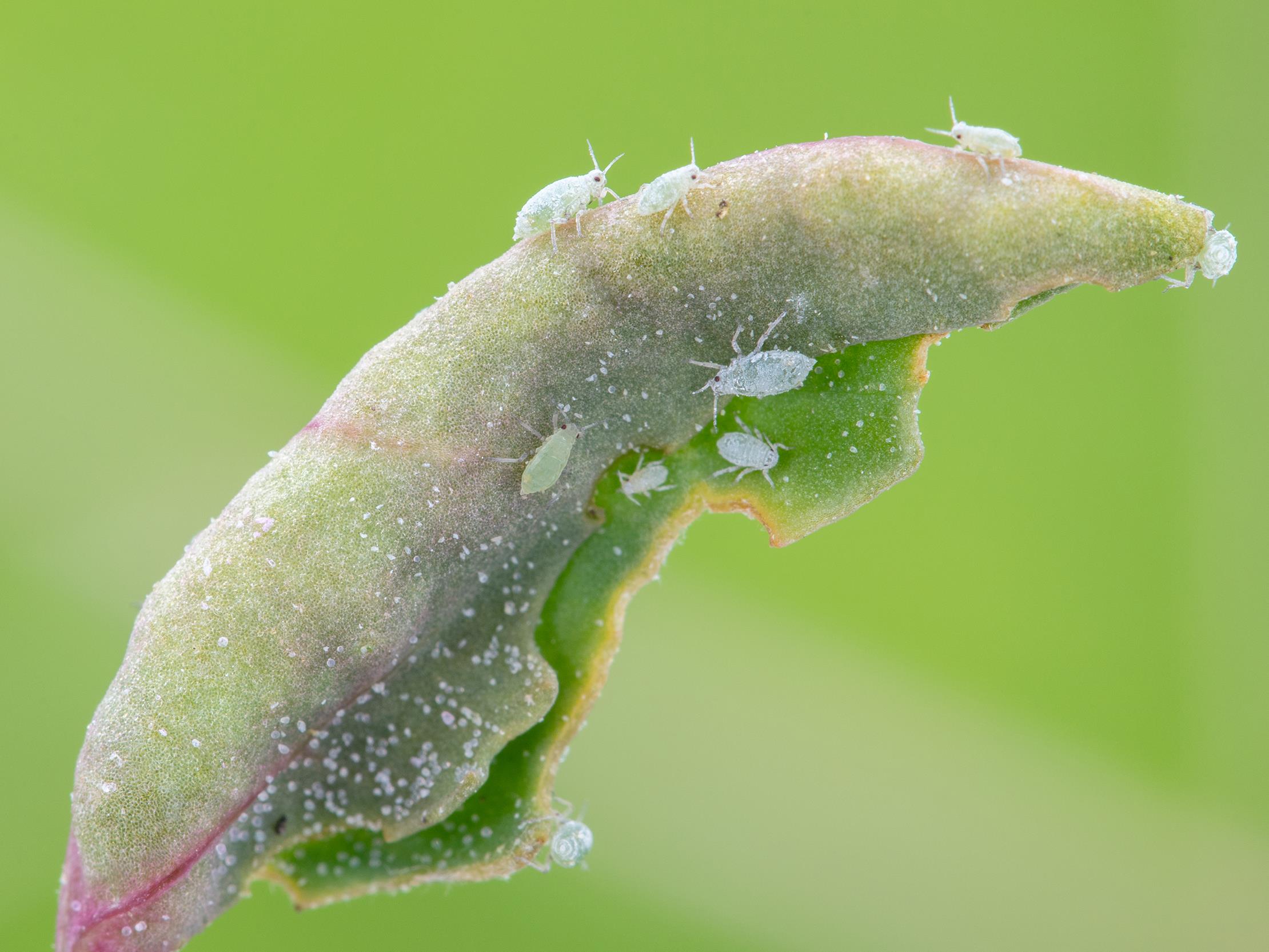 Colonie de pucerons sur une feuille enroulée