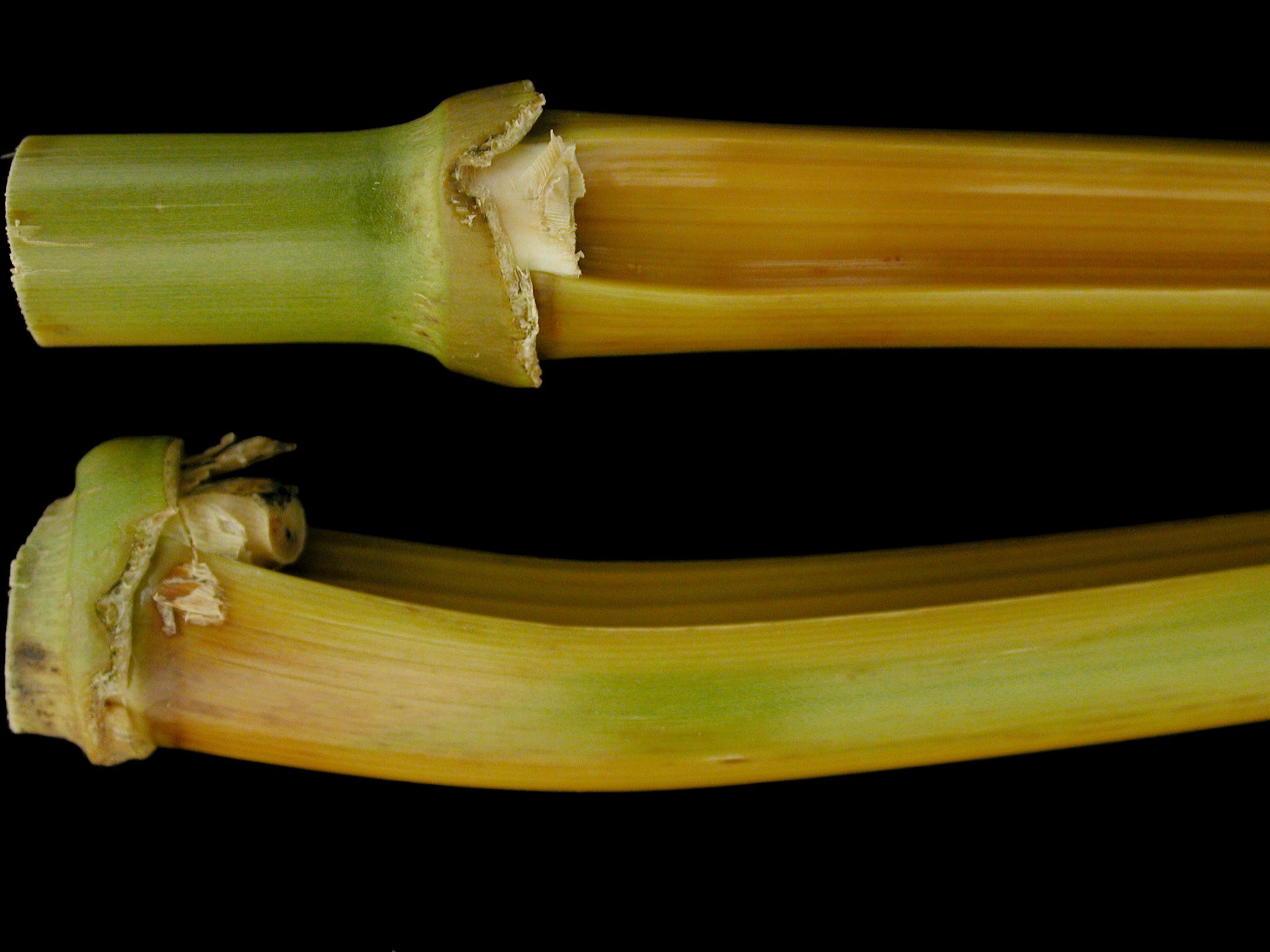 Jaunissement près des noeuds sur tiges de maïs grain et fourrager