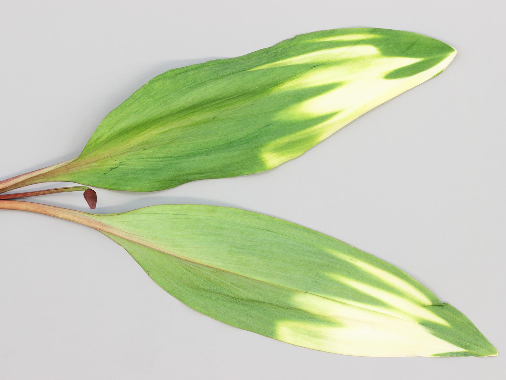 Sur des feuilles d’ail des bois provenant d’un site naturel, présence d’un jaunissement à blanchiment de la partie distale du limbe. Les autres organes sont sans symptôme. Aucun virus ni phytoplasme n’a été détecté des dommages. Considérant la nature du symptôme et de la proportion de plants atteints (50 %), les symptômes sont d'origine non parasitaire. Des conditions climatiques néfastes sont probablement impliquées. Une forte intensité lumineuse en matinée, combinée à une température très froide la nuit, peut causer de tels dommages. Au laboratoire de diagnostic en phytoprotection du MAPAQ, de telles observations ont déjà été notées chez le maïs et les céréales au printemps.