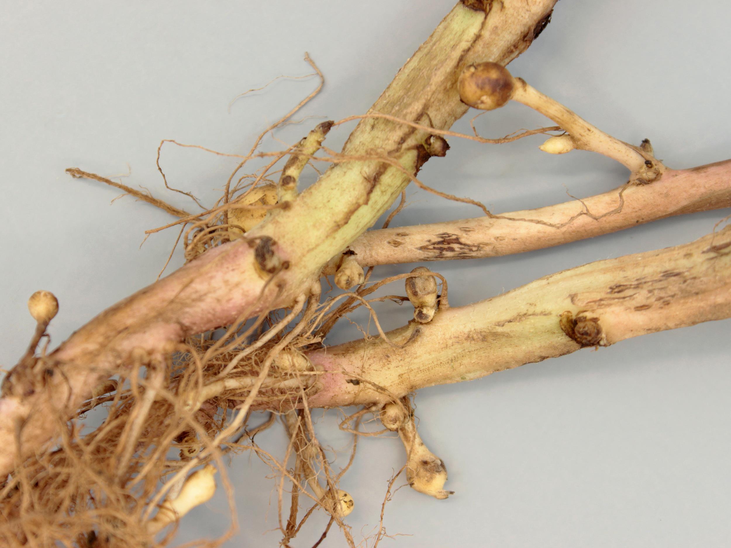 Un plant de pomme de terre montre la production de plusieurs petits tubercules à l’extrémité d’un court stolon. Les tubercules sont concentrés dans la région du collet. Ce désordre physiologique est lié à une croissance secondaire appelée boulage chez la pomme de terre.