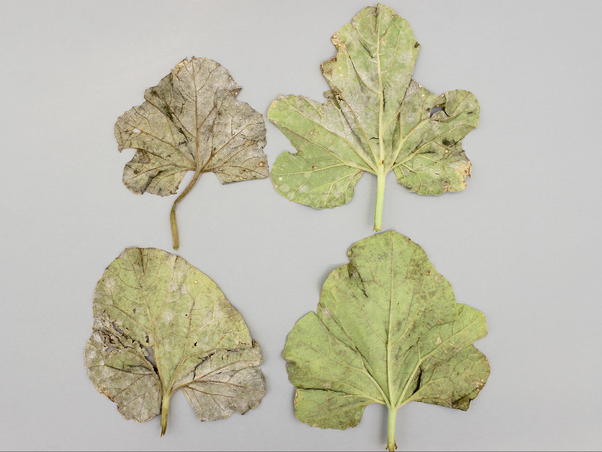 Mycélium blanc sur feuilles de melon brodé