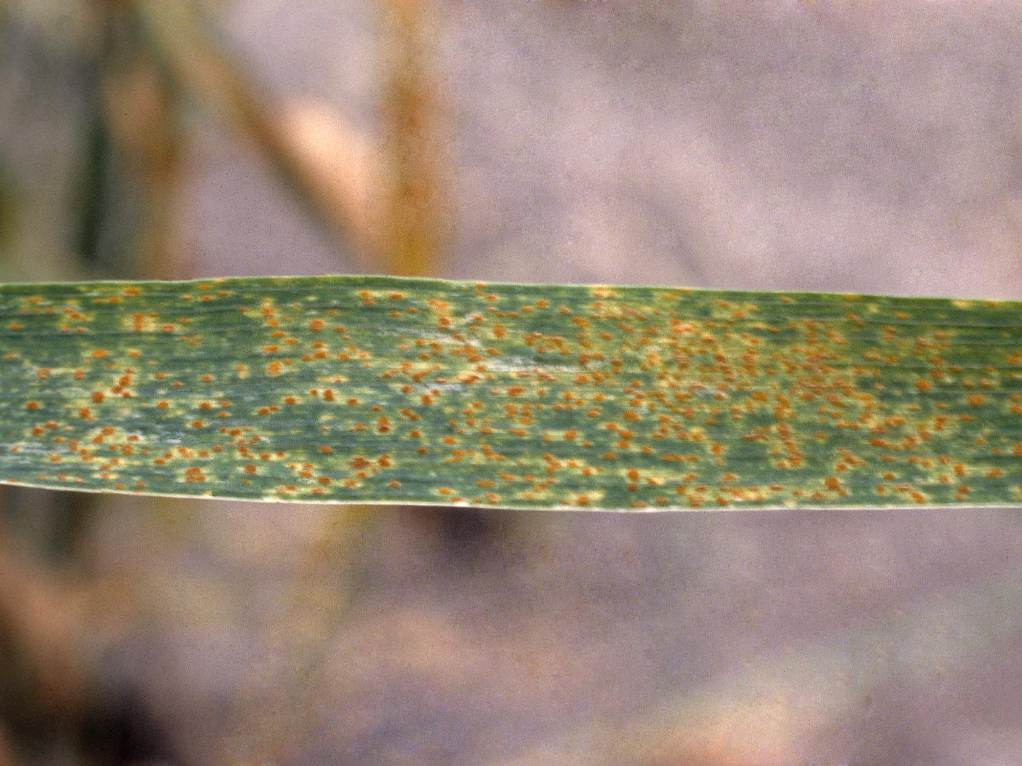 Pustules rouge orangée sur feuille de blé d'automne