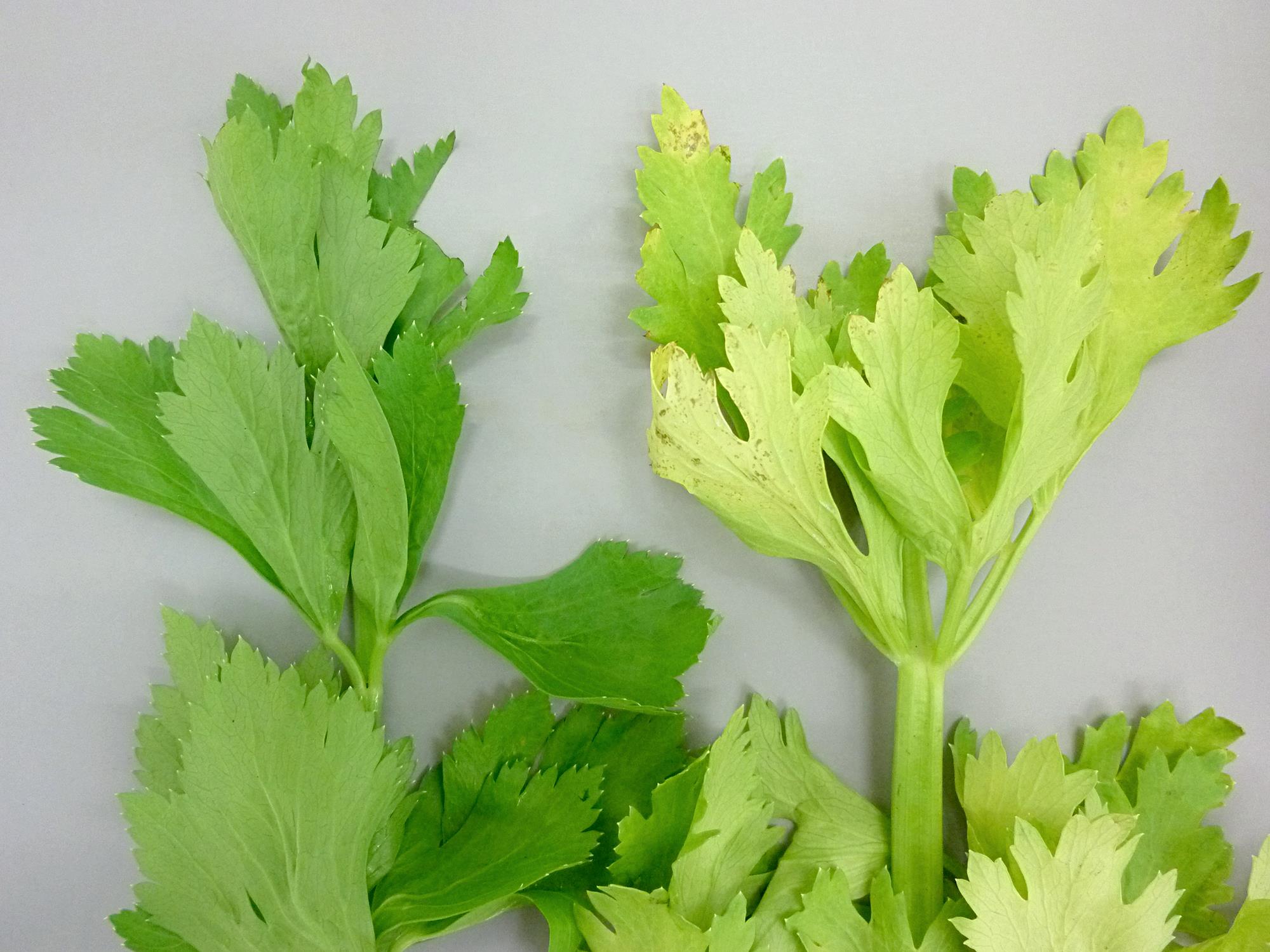 Comparaison entre des feuilles de céleri saines et affectées