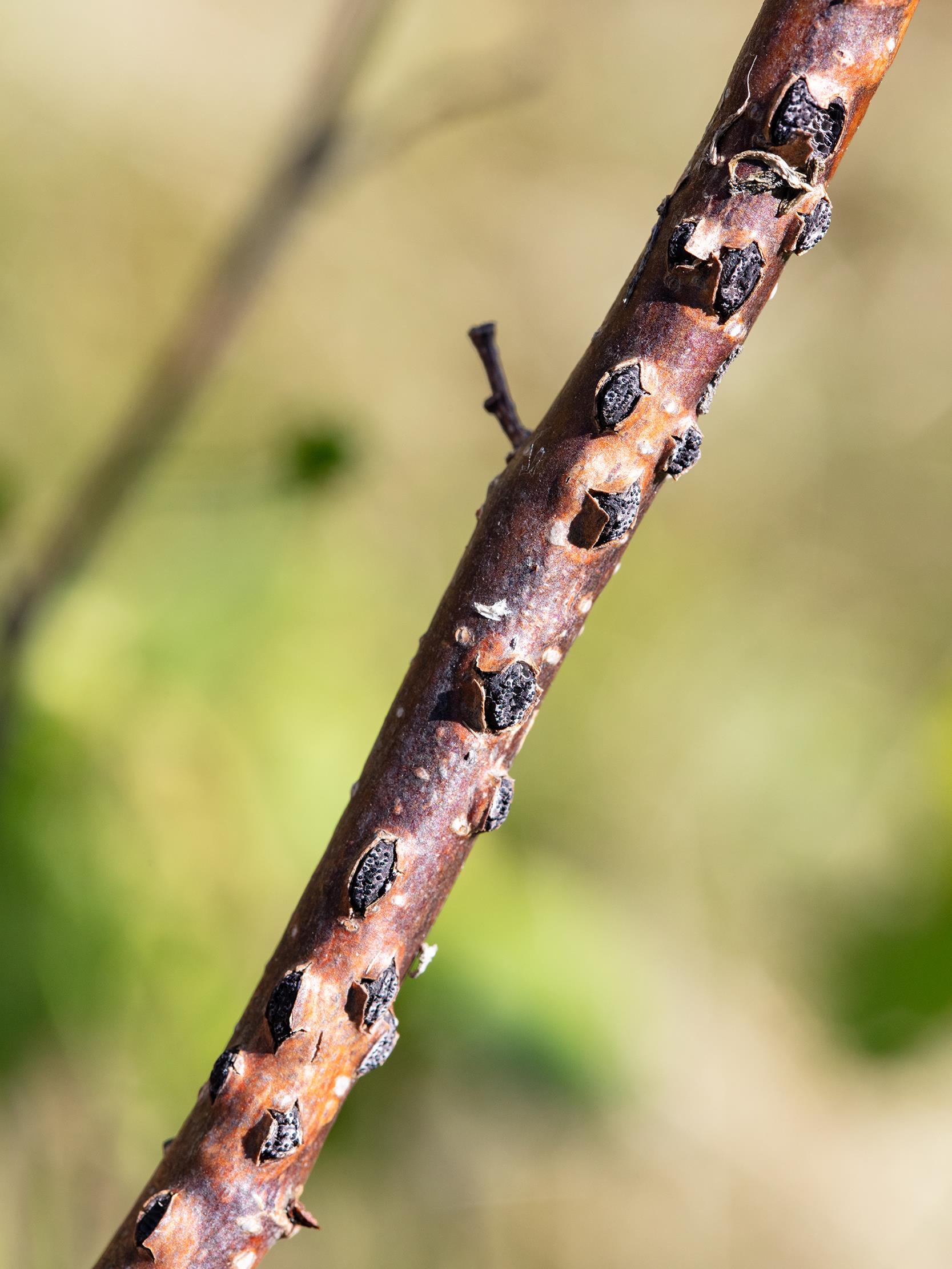 Vue rapprochée des stromata (organe de reproduction sexué) de Anisogramma anomala