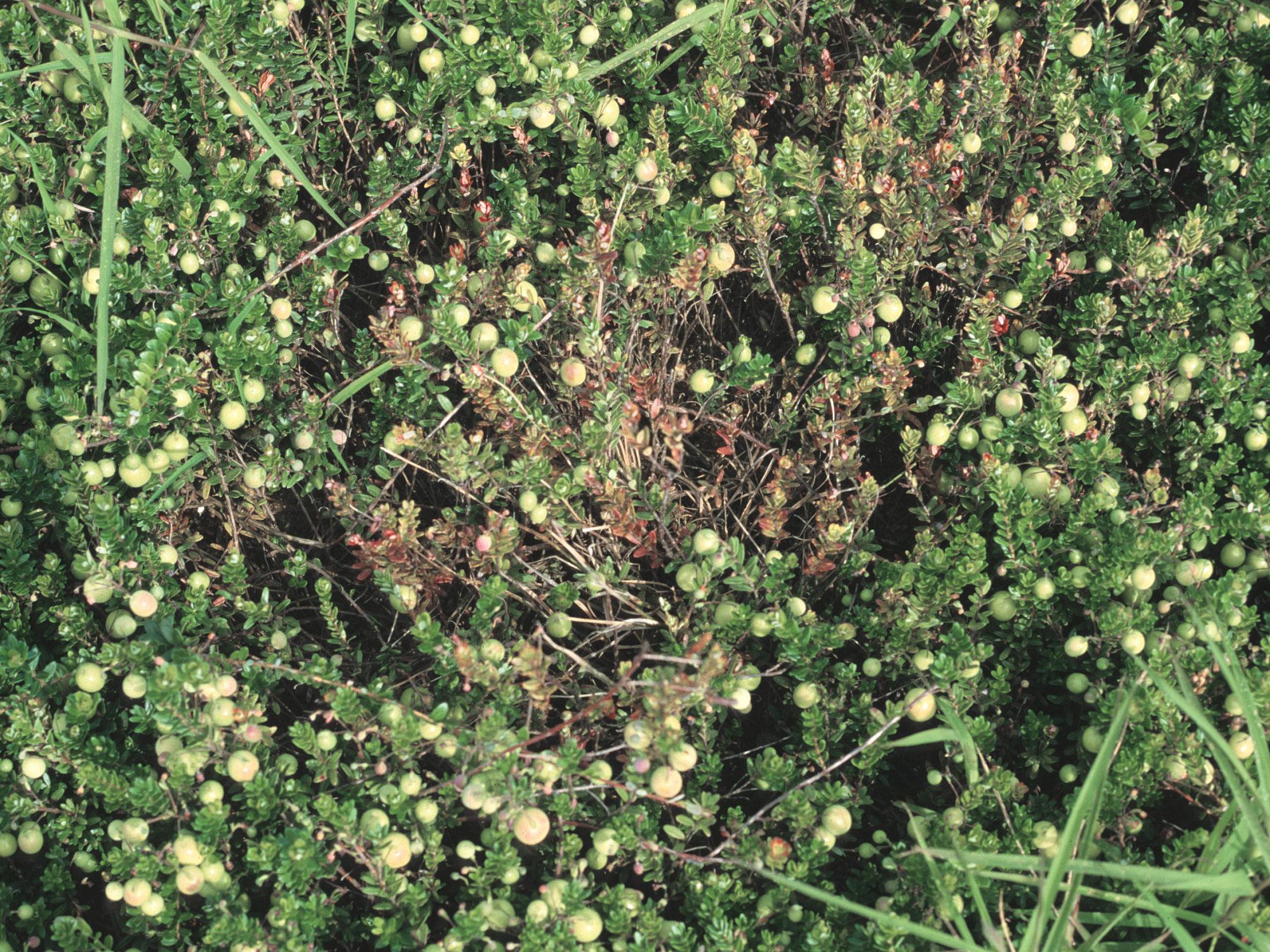 Le feuillage des plants de canneberge est devenu rouge à brun à la suite d’une application localisée de l’herbicide dichlobénil (Casoron).