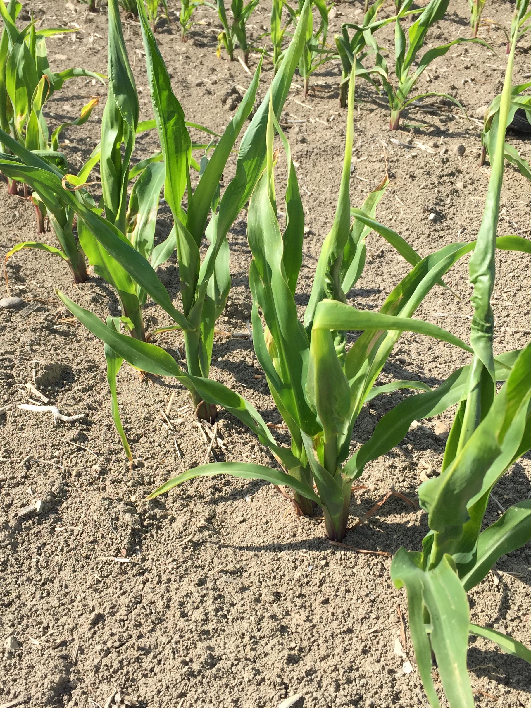Plants de maïs avec feuilles enroulées et brûlures