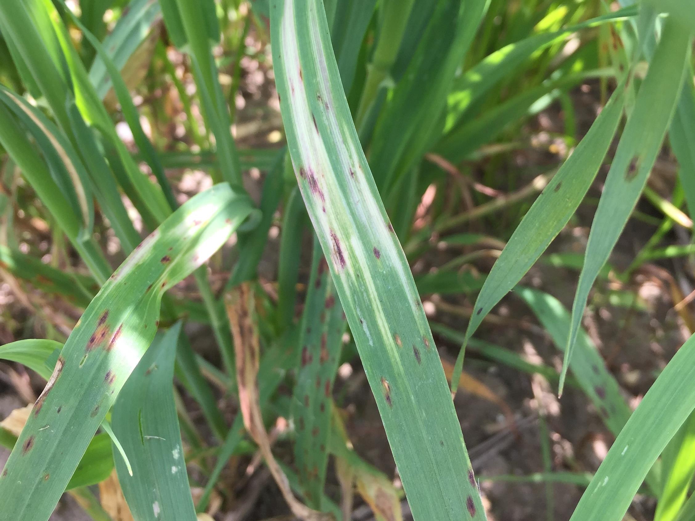 Des feuilles d’avoine présentent des stries blanches (ou décolorées) ainsi que des taches allongées rose-violacées, réparties aléatoirement, de l’apex vers le centre du limbe. Une seule variété d’avoine présente ces symptômes, survenus près l’application de l’herbicide INFINITY (pyrasulfotole/bromoxynil (ester de)), non homologué dans l’avoine. Les symptômes observés seraient attribuables au pyrasulfotole, l'une des matières actives composant l'herbicide : la décoloration ou le blanchiment des tissus est un symptôme typique des herbicides du groupe 27. L’étiquette mentionne par ailleurs que les cultures subissant un stress causé par des conditions météorologiques défavorables, telles que survenu au moment de l’application de l’herbicide, peuvent être endommagées. De plus, certaines variétés de céréales sont davantage sensibles que d’autres à l’herbicide INFINITY.