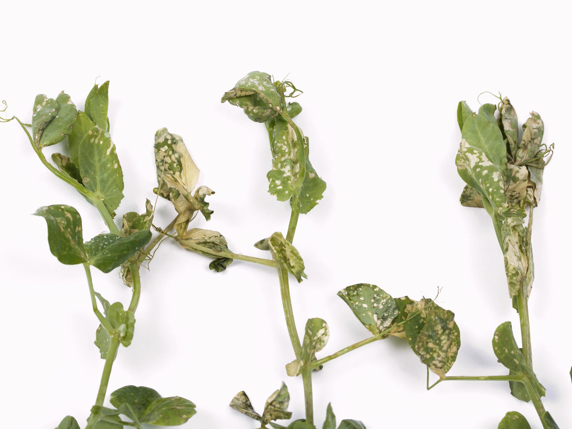 Brûlures sur feuilles et tiges de pois vert