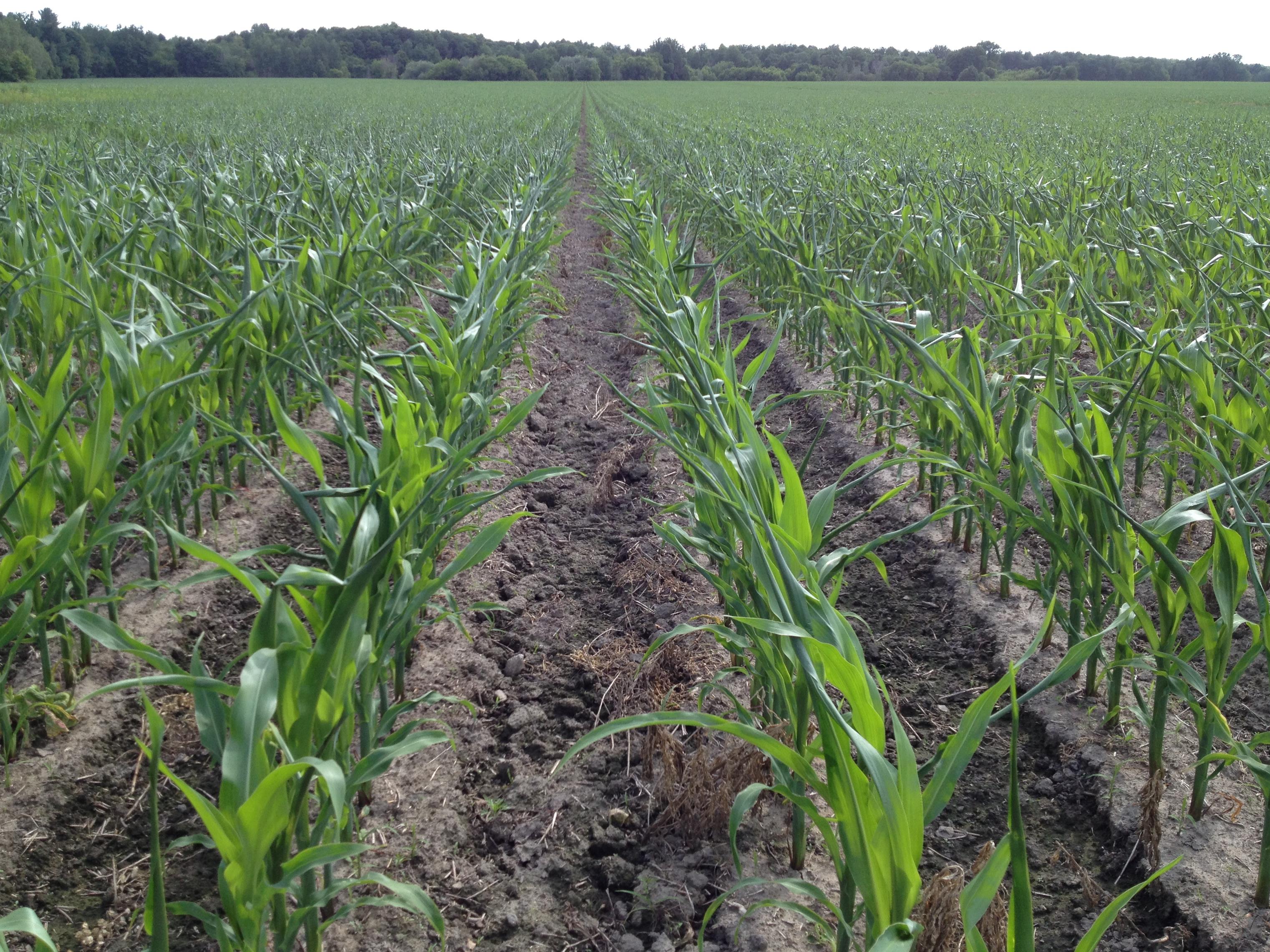 Les feuilles de plants de maïs ne se déploient pas normalement, elles sont enroulées en « queue d’oignon » (« onion leafing »). Ces malformations sont le résultat d’une phytotoxicité par le MCPA, appliqué trop tardivement sur la culture. Les symptômes sont apparus environ deux semaines après l’application de l’herbicide. Le produit a été lessivé suite à une pluie et serait entré en contact avec les racines, ce qui a probablement aussi affecté les plantules.