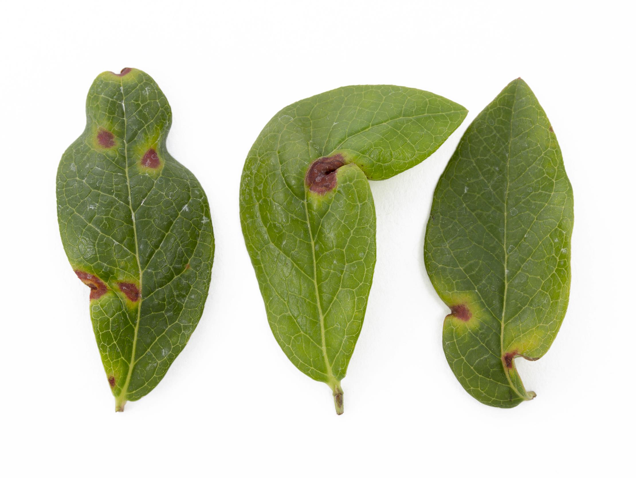 Taches et malformation sur feuilles de bleuetier en corymbe