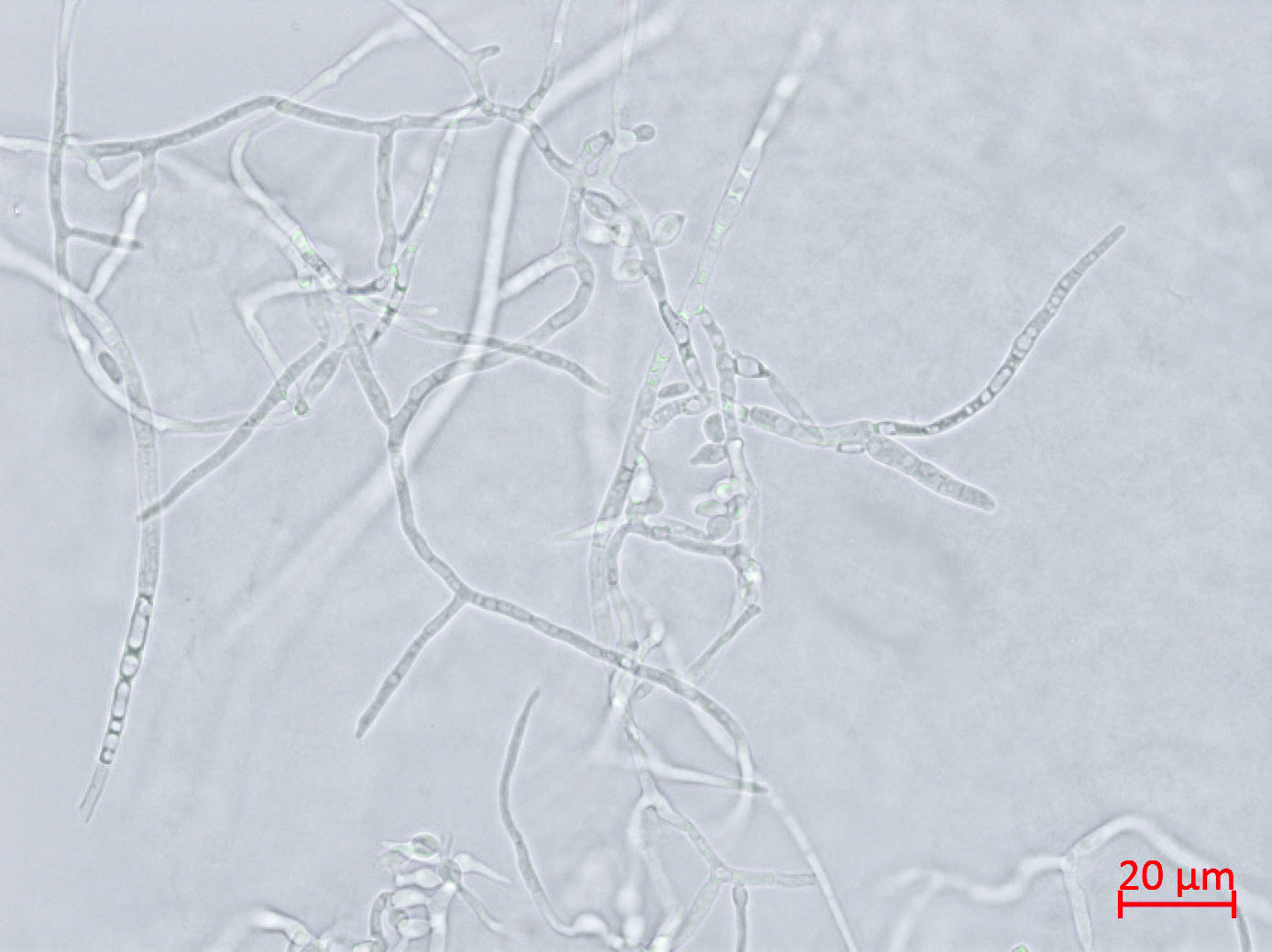 Microdochium sp. isolé sur milieu SNA à partir de racines de pâturin annuel.
