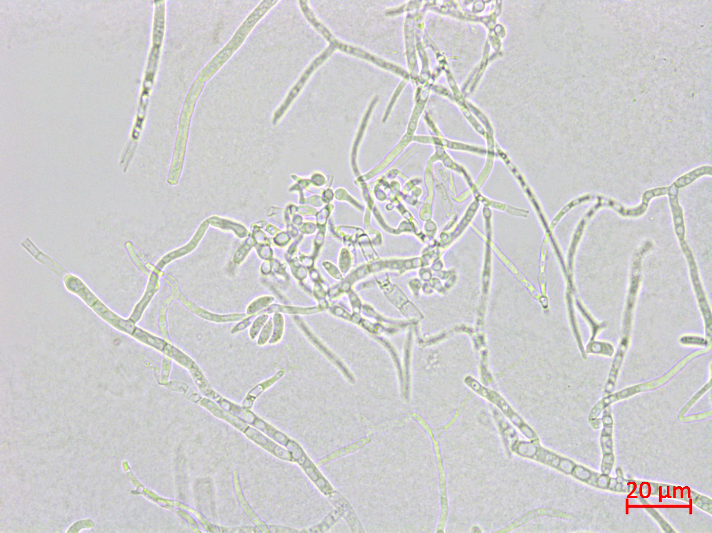 Microdochium sp. isolé sur milieu SNA à partir de racines de pâturin annuel.