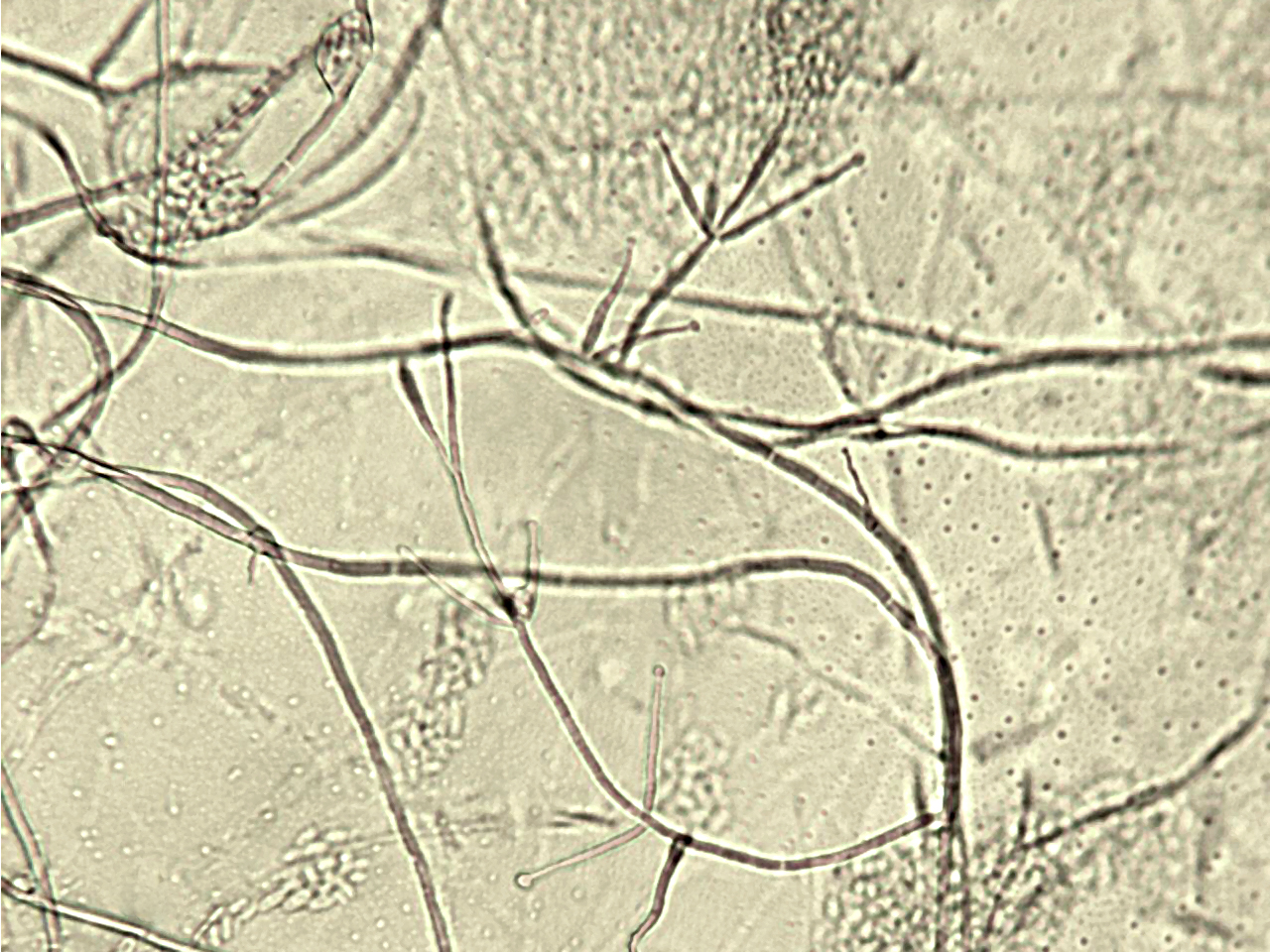 Conidies, conidiophores en forme de verticilles et hyphes de Verticillium dahliae