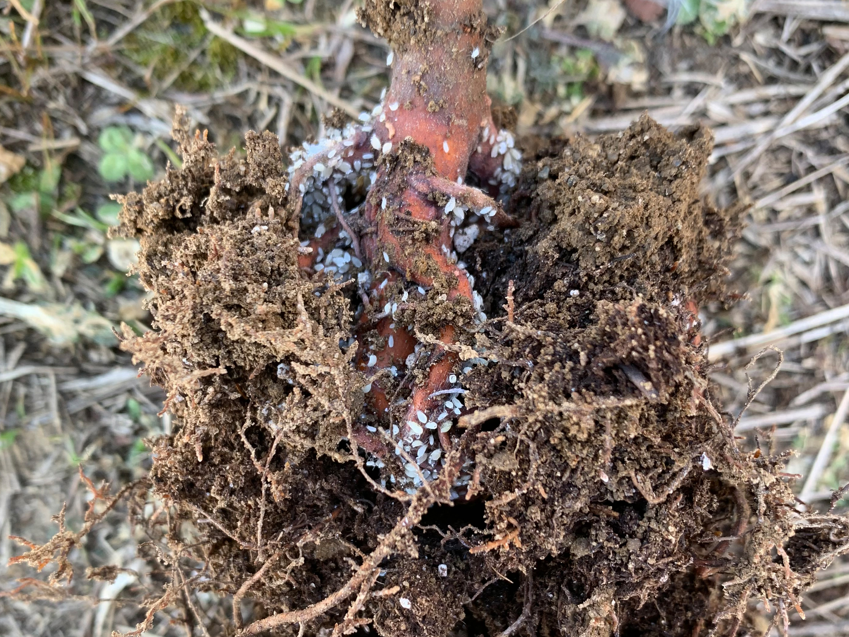 Colonie de pucerons sur des racines de sapin