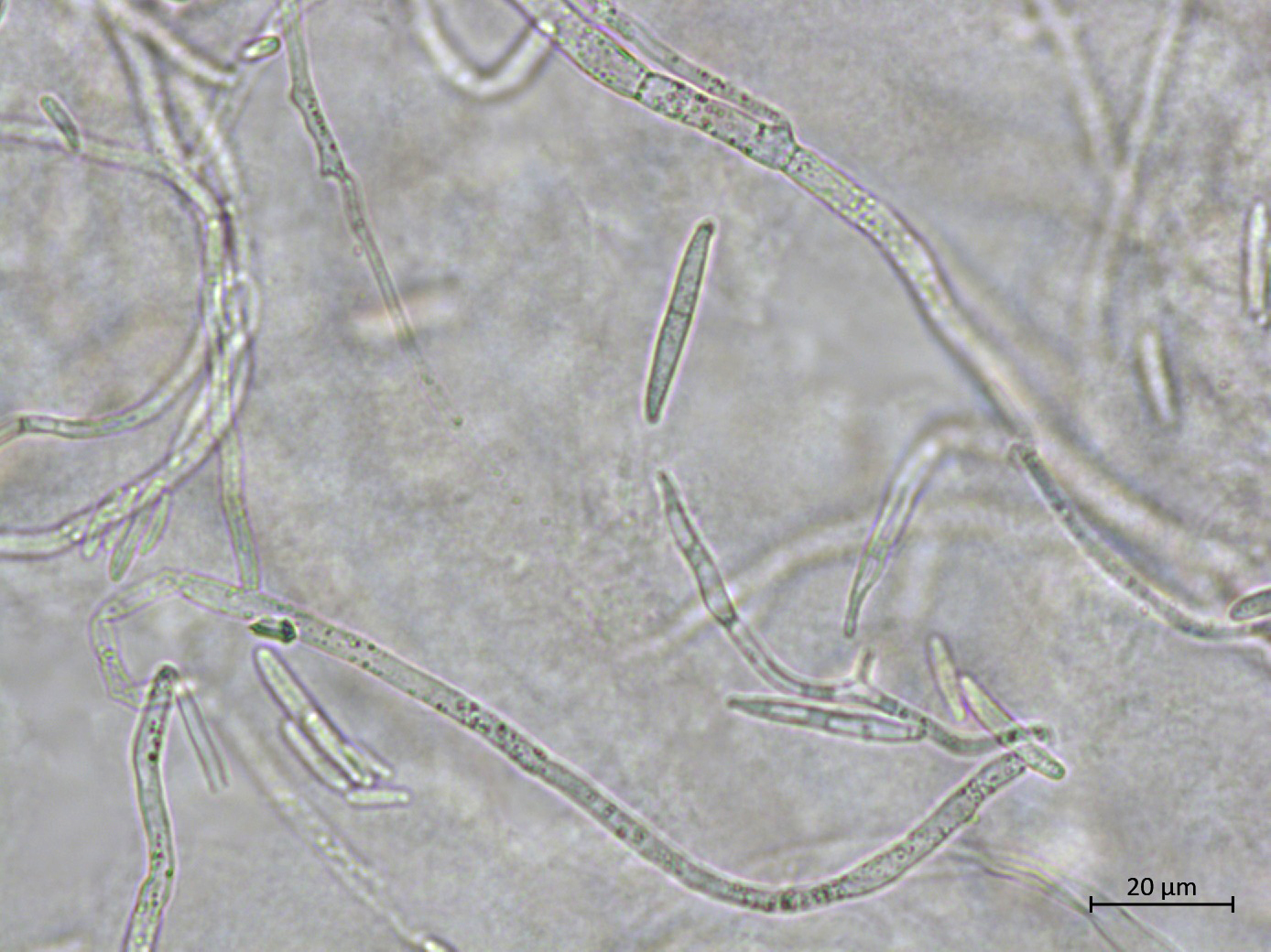 Conidies et conidiophores de Fusarium proliferatum.
