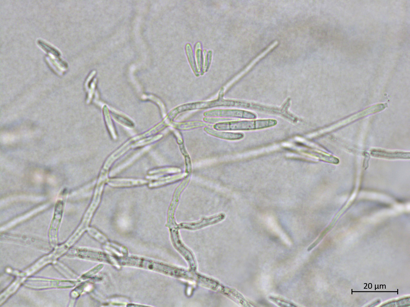 Conidies et conidiophores de Fusarium proliferatum.