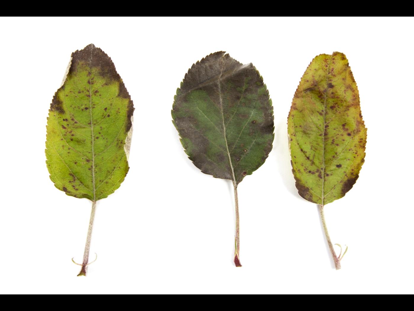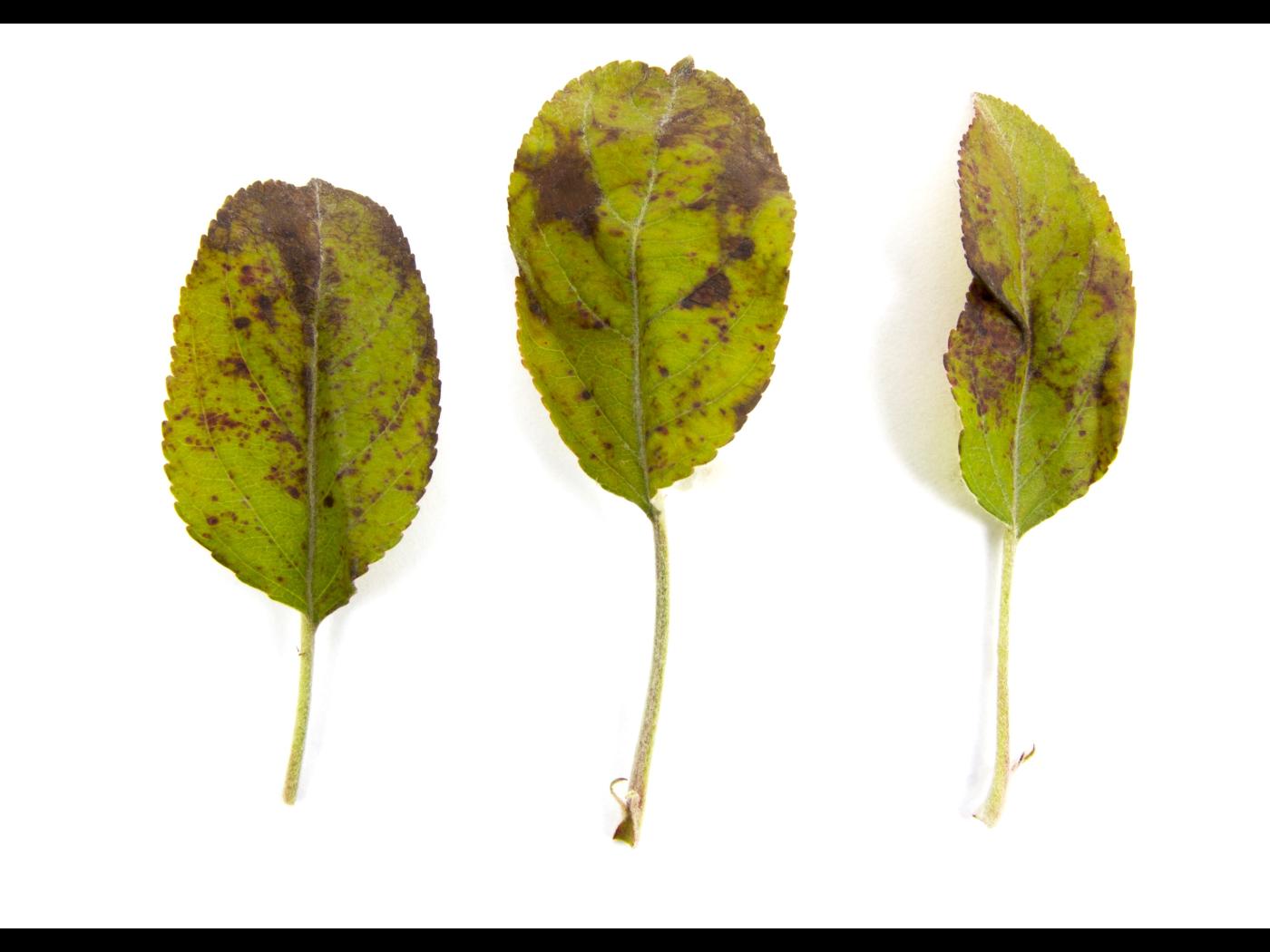 Description: Des feuilles de pommier du cv Royal Gala montrent des taches rougeâtres devenant brun foncé, réparties aléatoirement sur le limbe ou à la marge, de forme et de grosseur variables et suivant quelques fois le repli des feuilles médianes et terminales, et présentes uniquement à la face adaxiale. Un dépôt blanchâtre est visible au microscope. Ces symptômes ne sont pas de nature phytopathologique mais plutôt liés à un facteur non parasitaire, soit une réaction phytotoxique aux produits de protection … En savoir plus