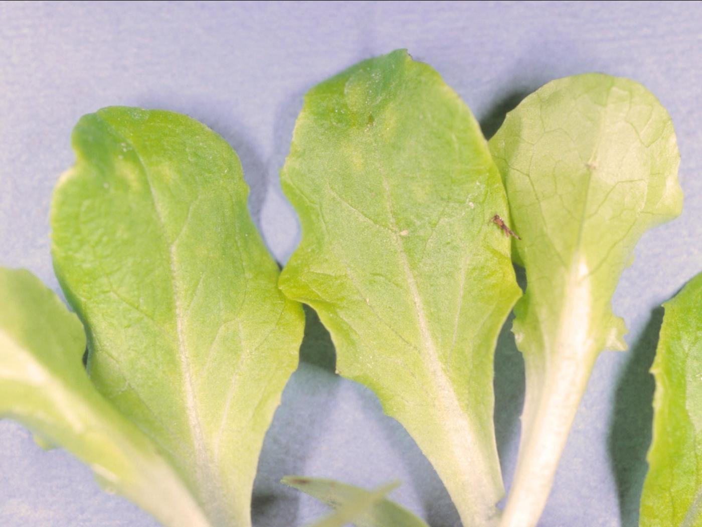 Les jeunes plantules de laitue sont sensibles à la blessure de contact par les engrais parce que leur cuticule est plus mince que celle des plants plus développés. La blessure de contact par les engrais survient lorsque les engrais liquides ou granulaires, constitués d’éléments chimiques concentrés, entrent en contact direct avec le feuillage. Les feuilles sont moins bien adaptées que les racines pour absorber les engrais. Chez la feuille, ils entrent par la cuticule et parfois par les stomates. Malgré ce problème, les applications foliaires doivent viser essentiellement les jeunes feuilles qui sont plus réceptives que les feuilles plus âgées. La blessure de contact par les engrais est occasionnelle et mineure.