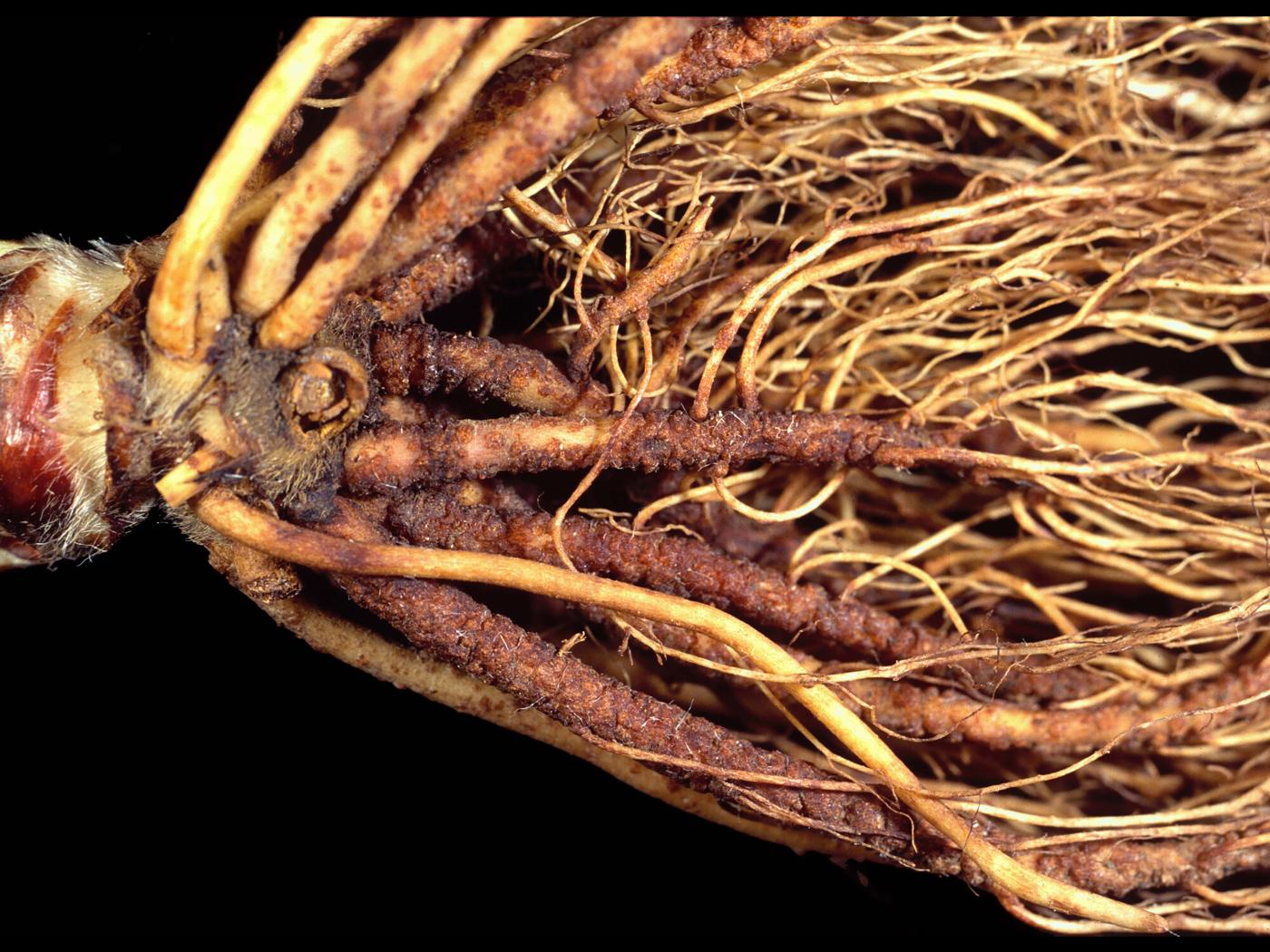 Légende: Racines de fraisier liégeuses