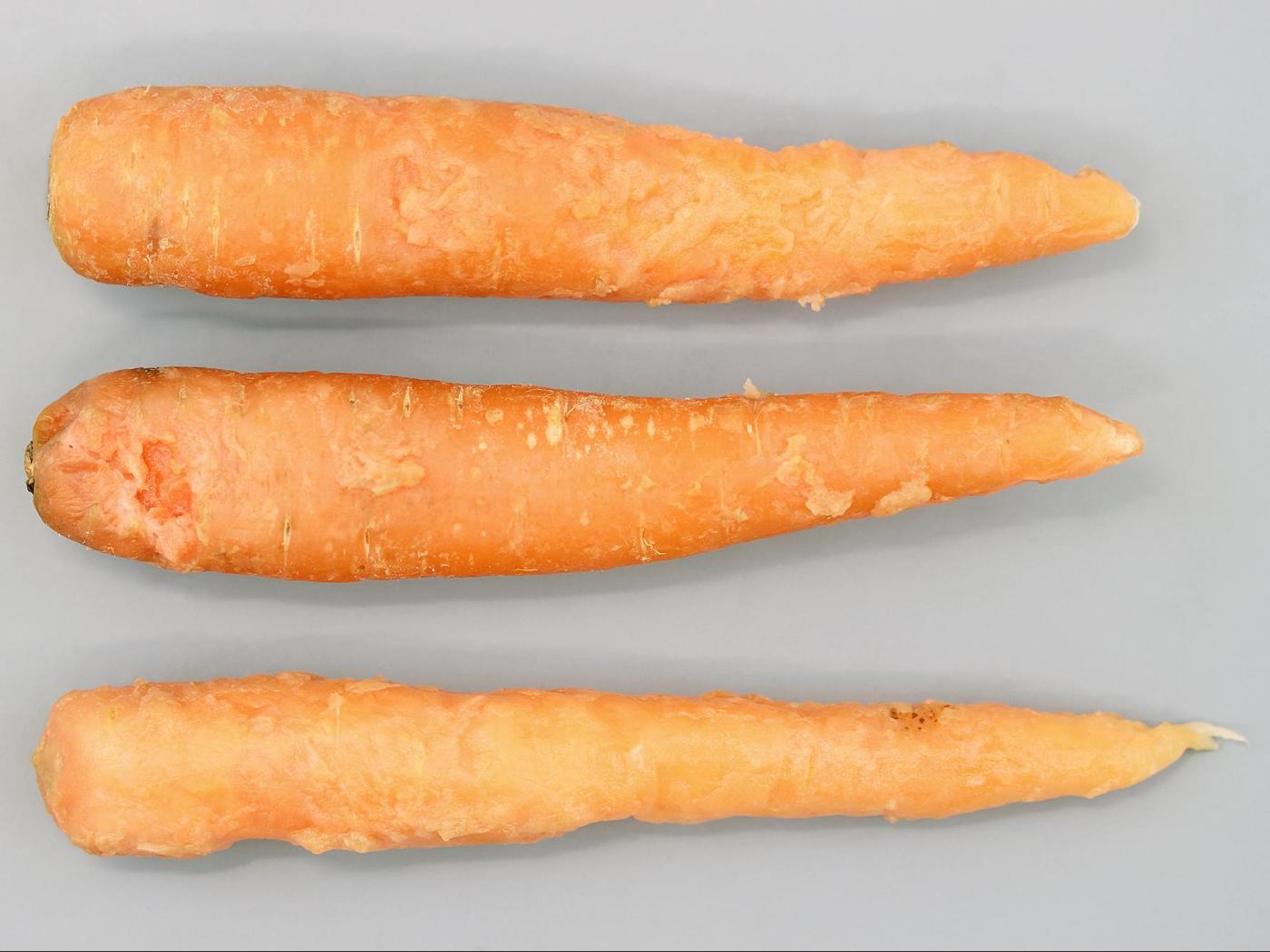 Le gel survient lorsque la température chute rapidement sous 0 °C alors que les plantes ne sont pas encore acclimatées. Les symptômes se manifestent rapidement lorsque la température redevient plus chaude. Les dommages sont irréversibles. Le gel augmente la perméabilité cellulaire, occasionnant une fuite du contenu cellulaire et la mort de la cellule. La carotte est affectée occasionnellement par le gel et les dommages sont mineurs.