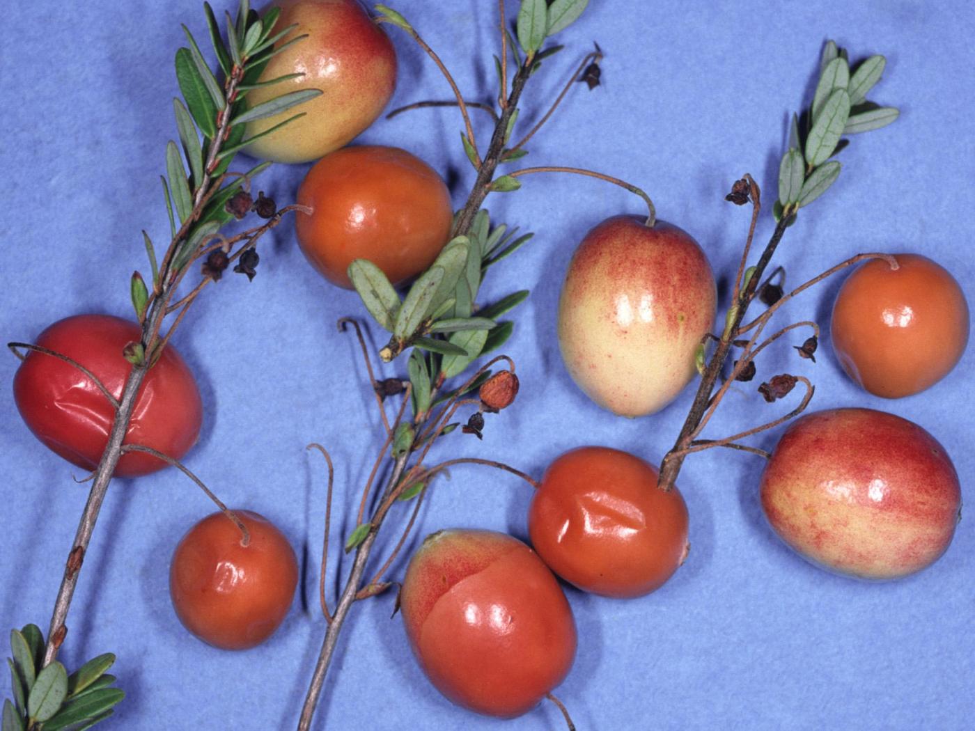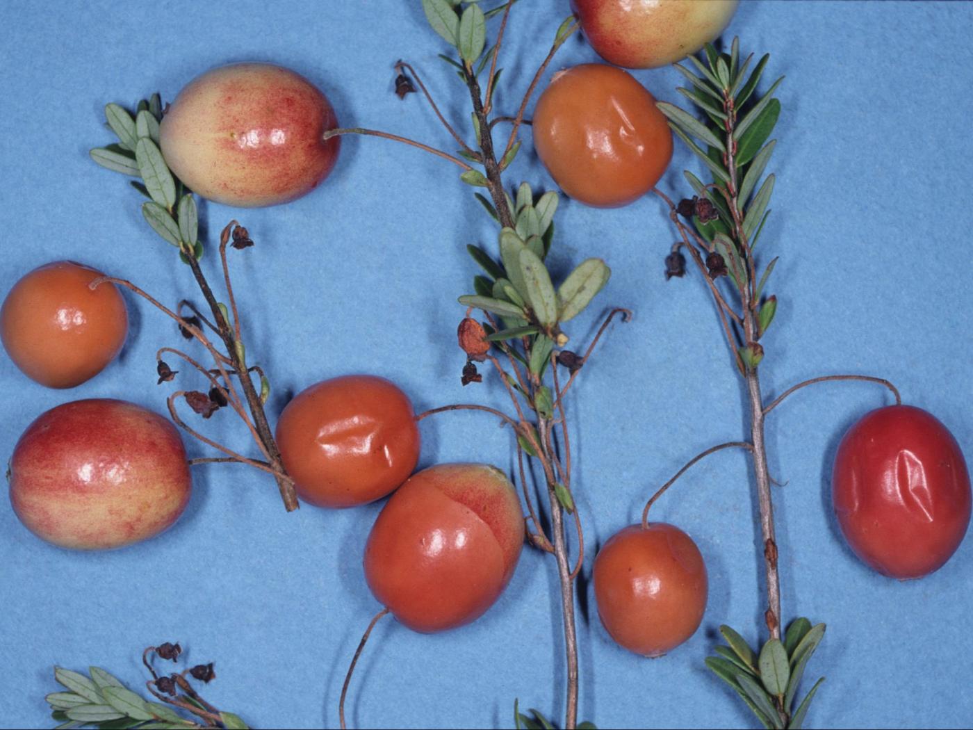 Chez la canneberge, les symptômes externes des fruits peuvent être confondus avec ceux causés par la pourriture des fruits (Coleophoma empetri – fruit entier affecté).
