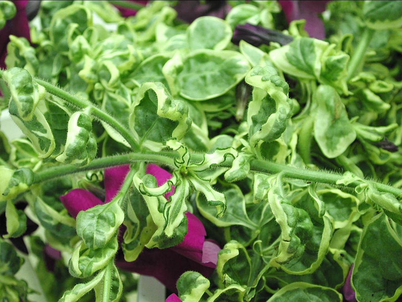 Légende: Malformation des feuilles de pétunia