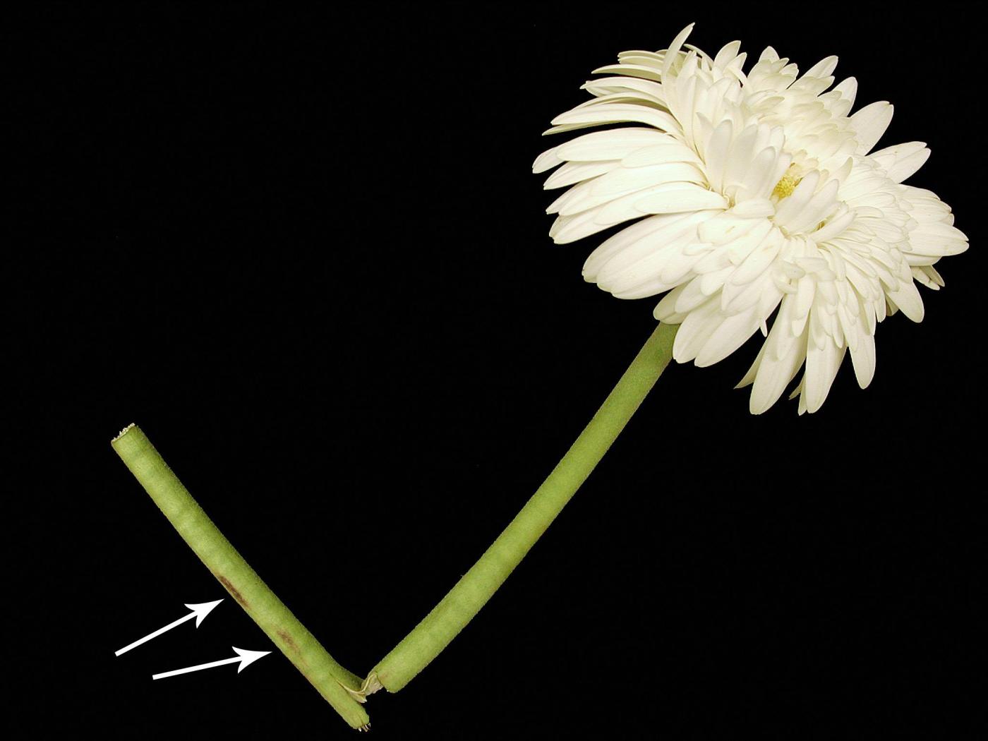 Tige : fragile, cassante et courte. Épinastie et entrenœuds courts. La partie terminale est affectée en premier. Prolifération de tiges donnant un aspect de « balai de sorcière » ou de “zipper”.