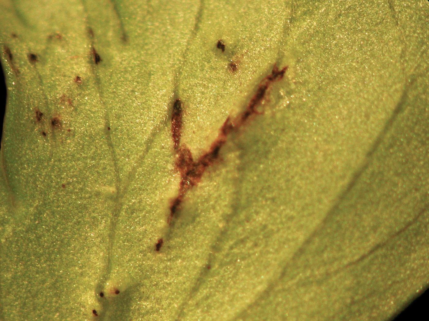 Plant : ont une croissance réduite, avec la mort des points de croissance. Mauvais aoûtement.