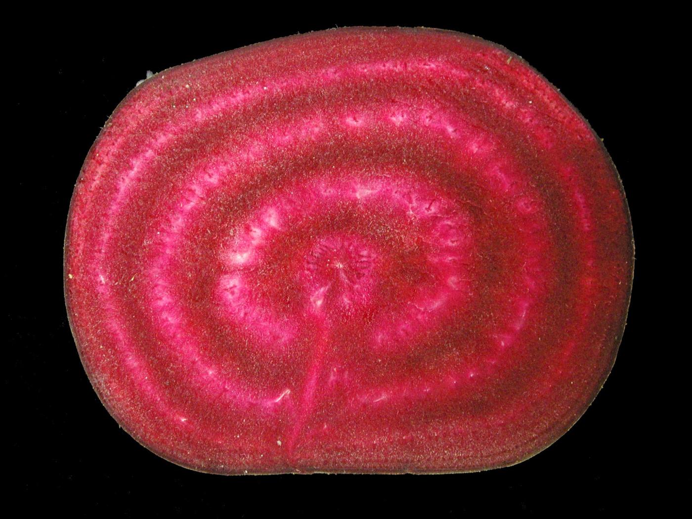 Description: La racine d’une betterave potagère (cv 'Detroit Supreme') provenant d’un champ est ferme et ne présente pas de symptôme externe. Lorsque la racine est coupée transversalement, la chair montre une alternance d’anneaux blancs et d’anneaux pourpres prenant l’apparence d’une cible. Les tests de laboratoire se sont avérés négatifs pour la détection de virus et de champignons pathogènes.   La conseillère agricole mentionne que tous les plants de cette variété présentent ce symptôme et que la températu… En savoir plus